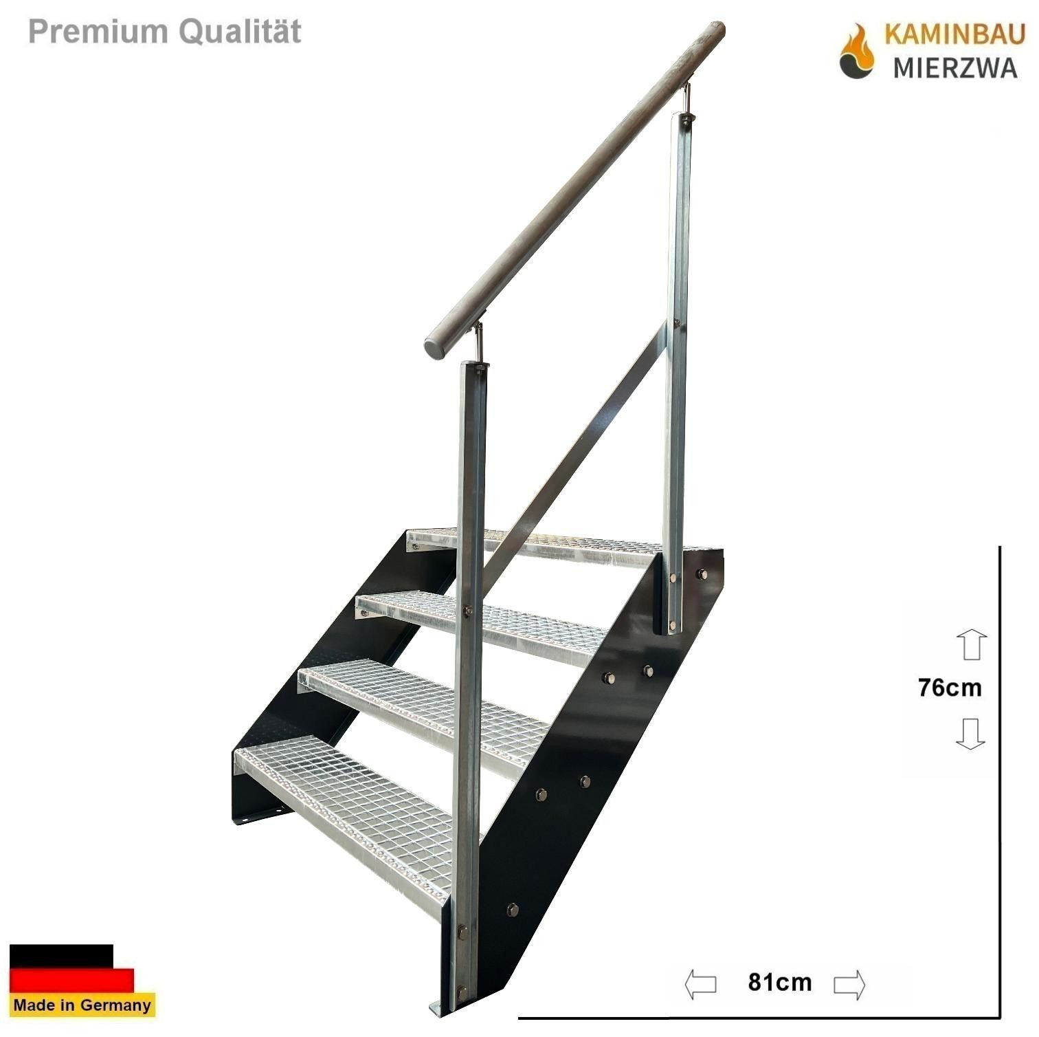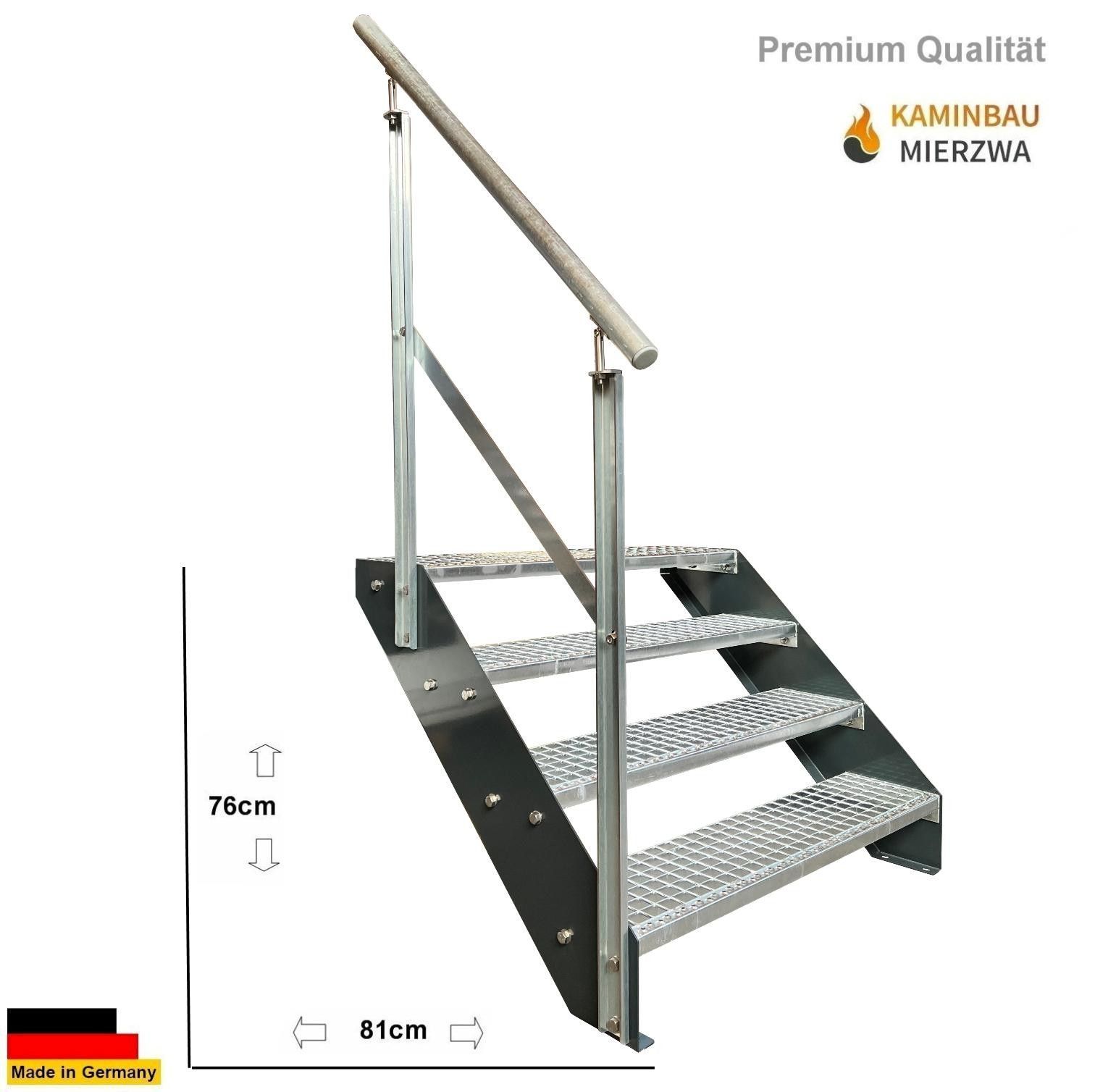 • Wangentreppe mit Geländer 4 Stufen Verzinkt H:76cm