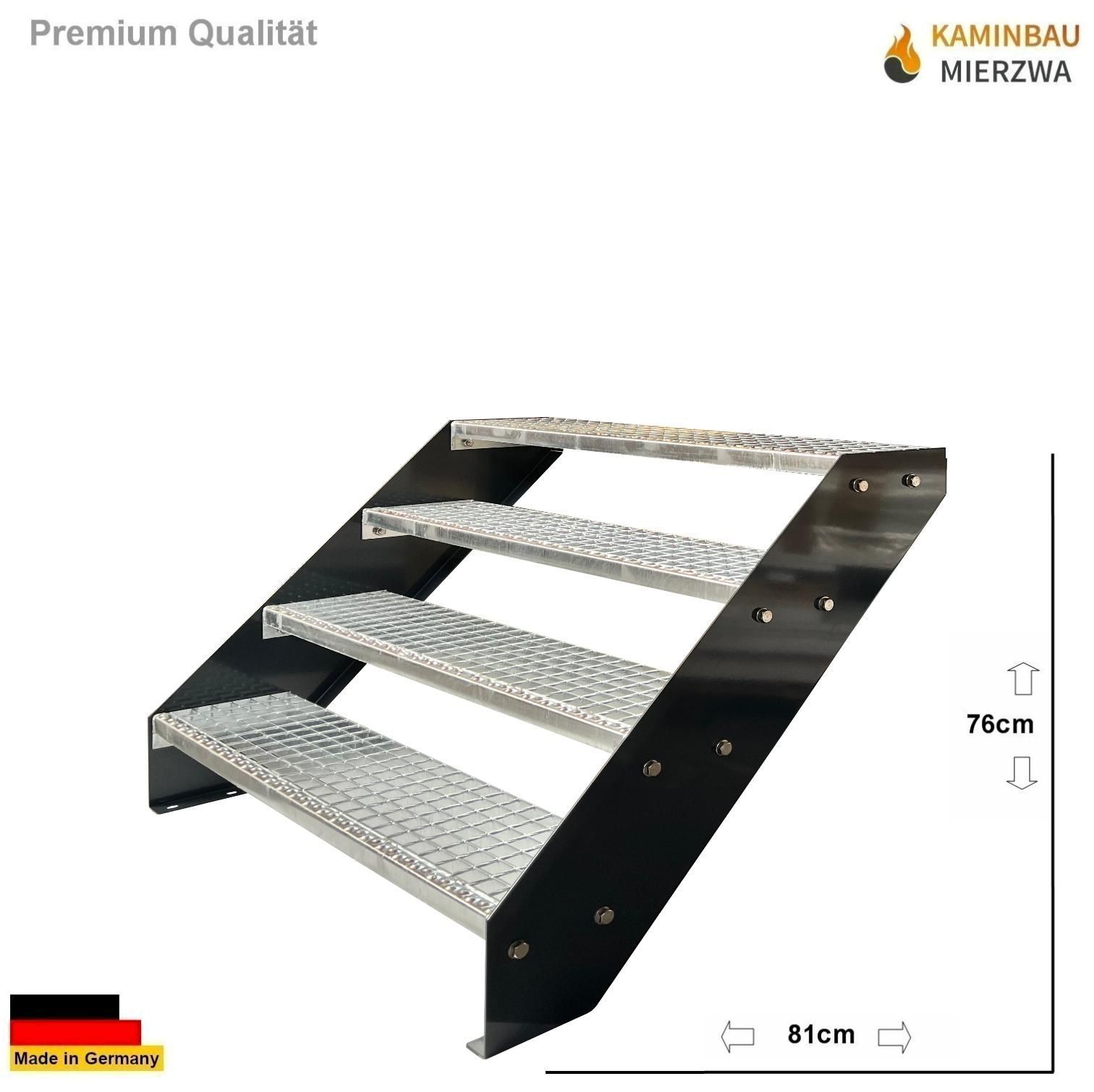 • Wangentreppe mit Geländer 4 Stufen Ganz Pulverlackiert H:76cm