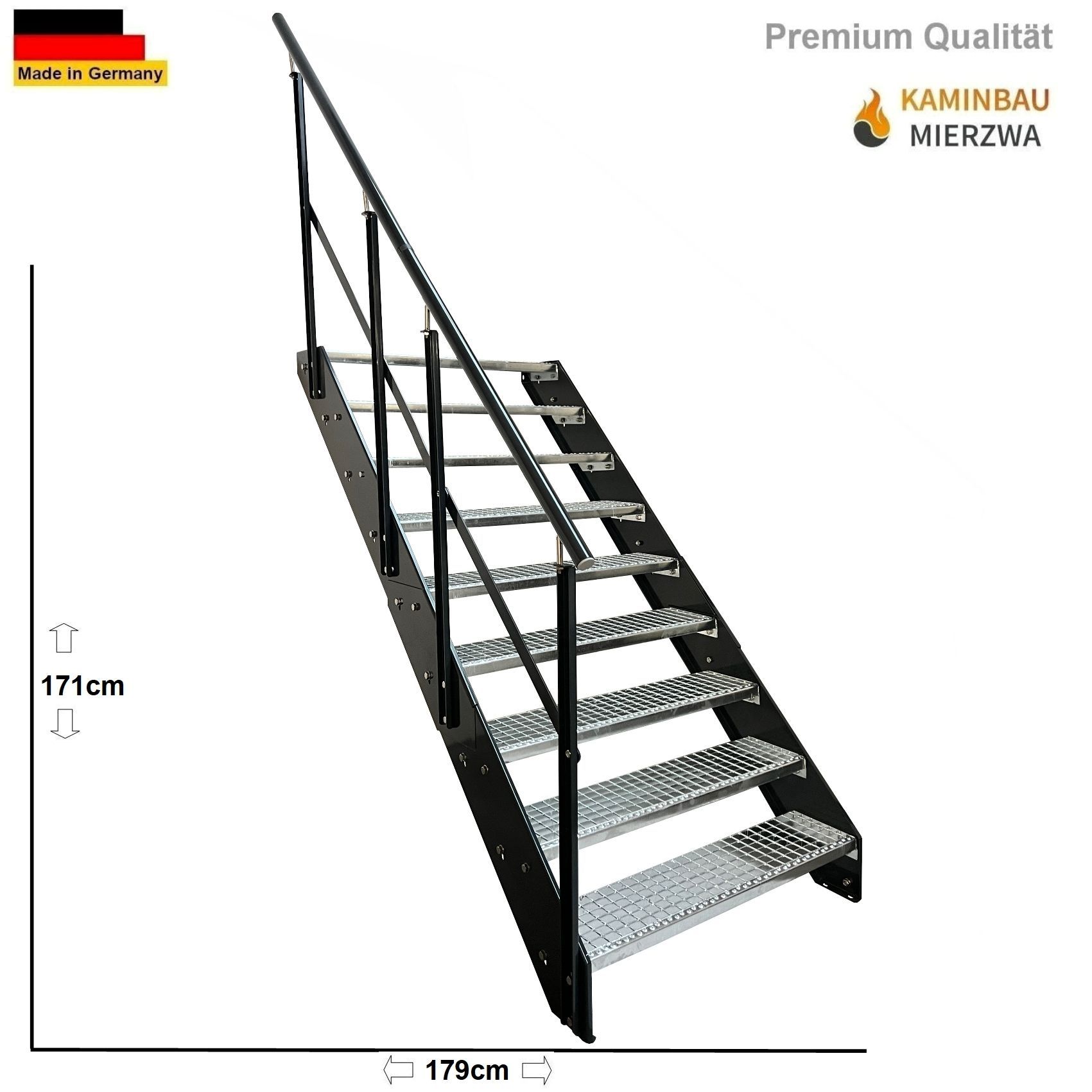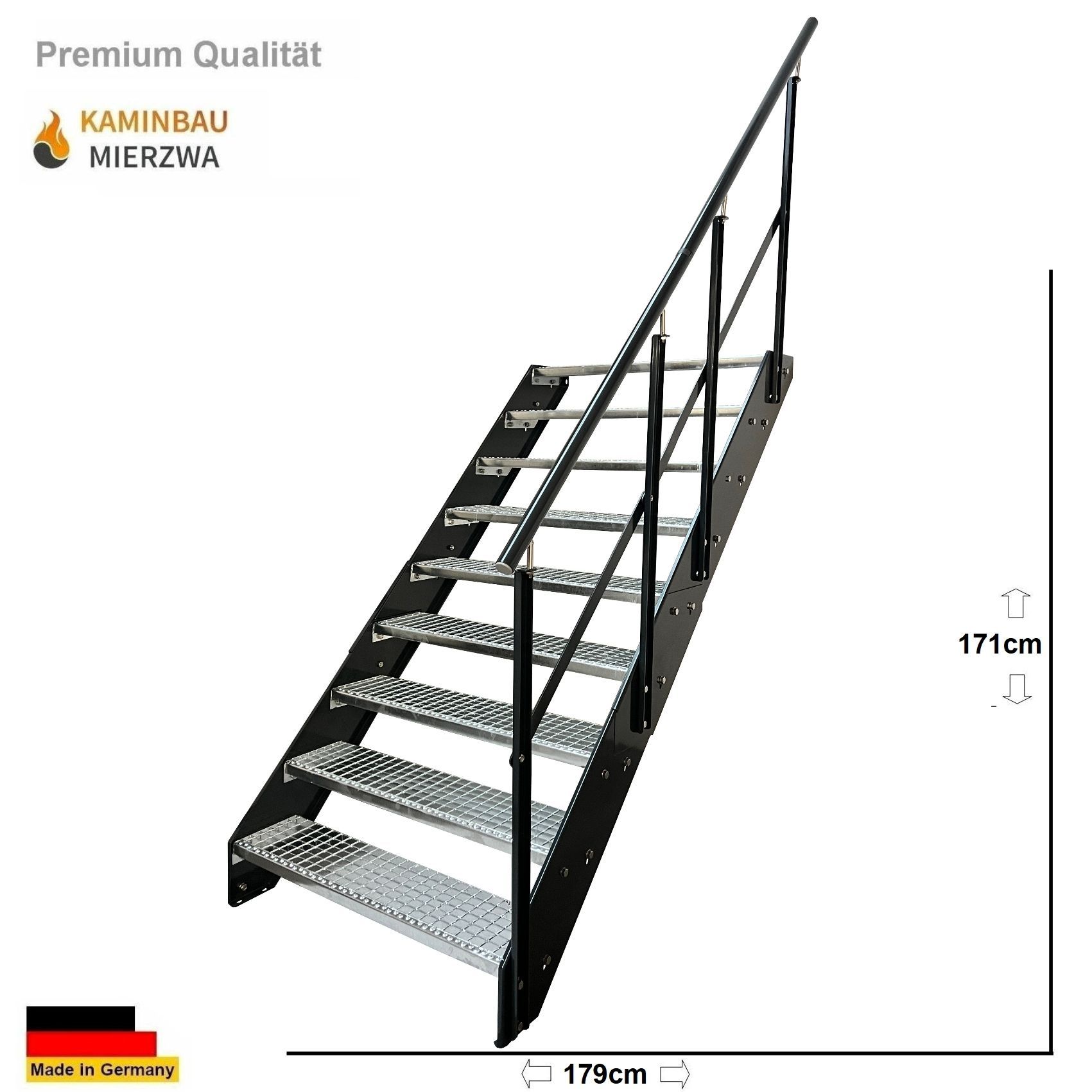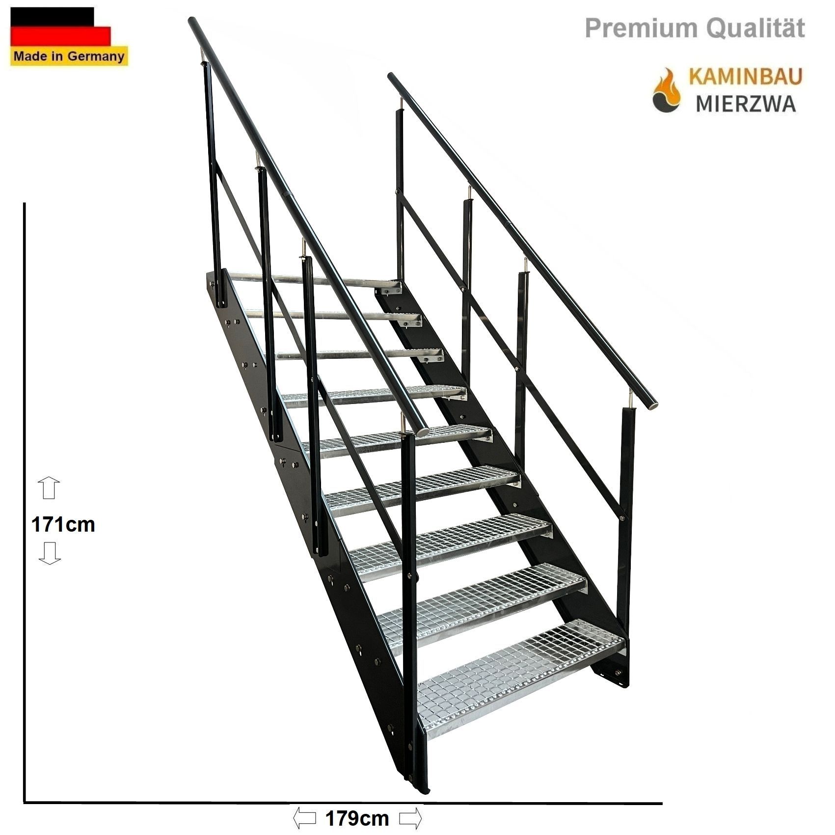 Wangentreppe Geländer 9 Stu. Wangen und Geländer Pulverlackiert H:171cm