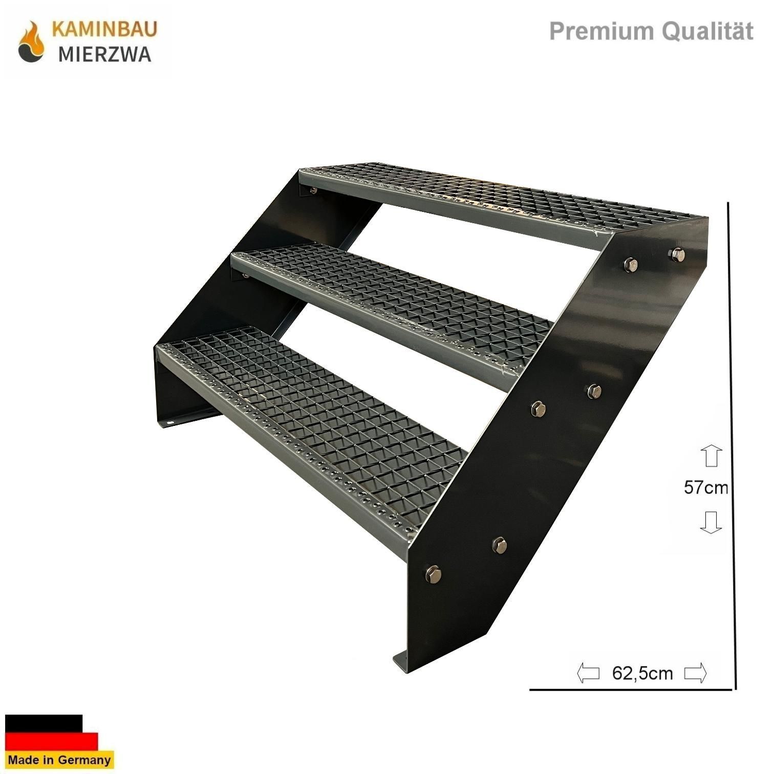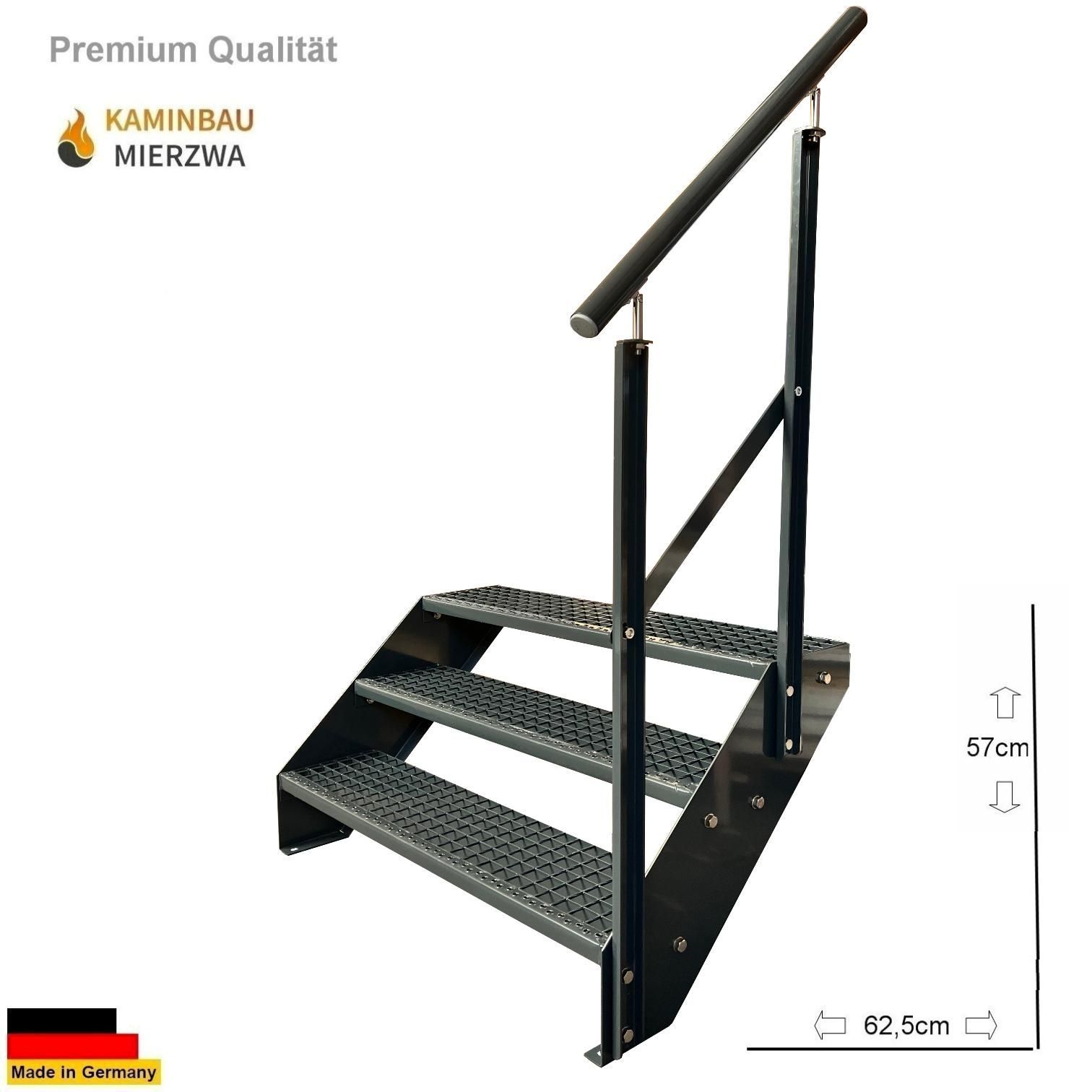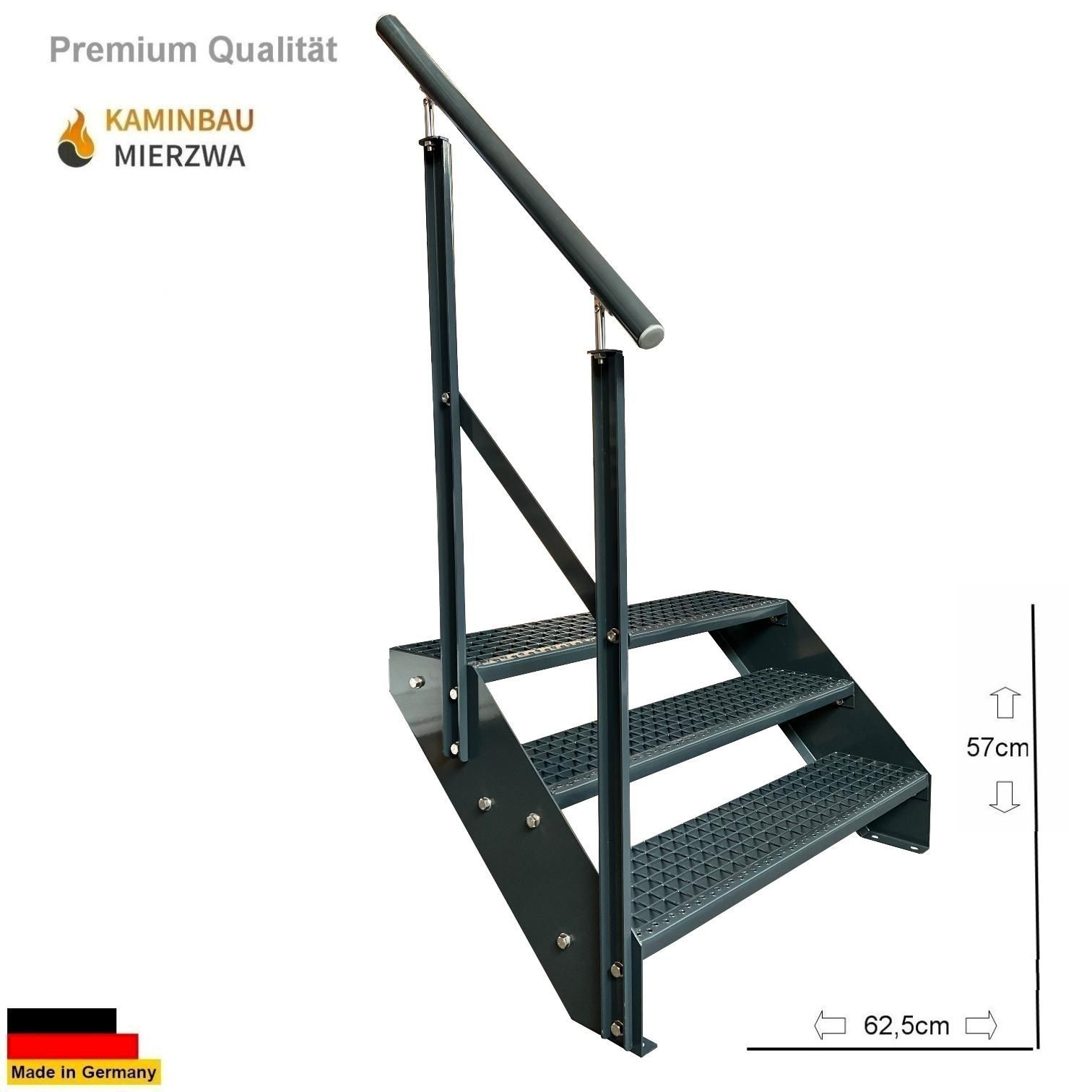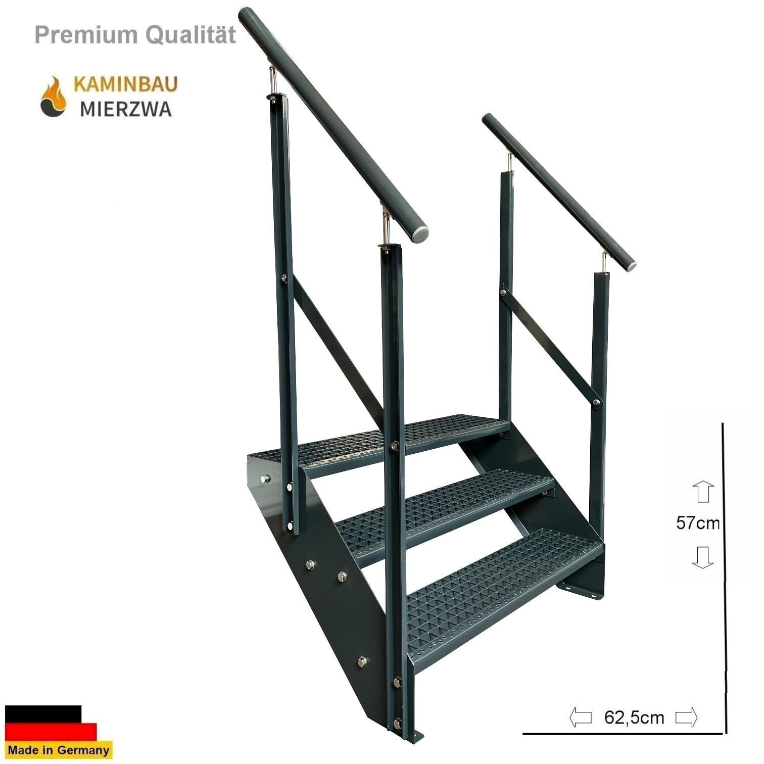 Wangentreppe mit Geländer 3 Stufen Ganz Pulverlackiert H:57cm