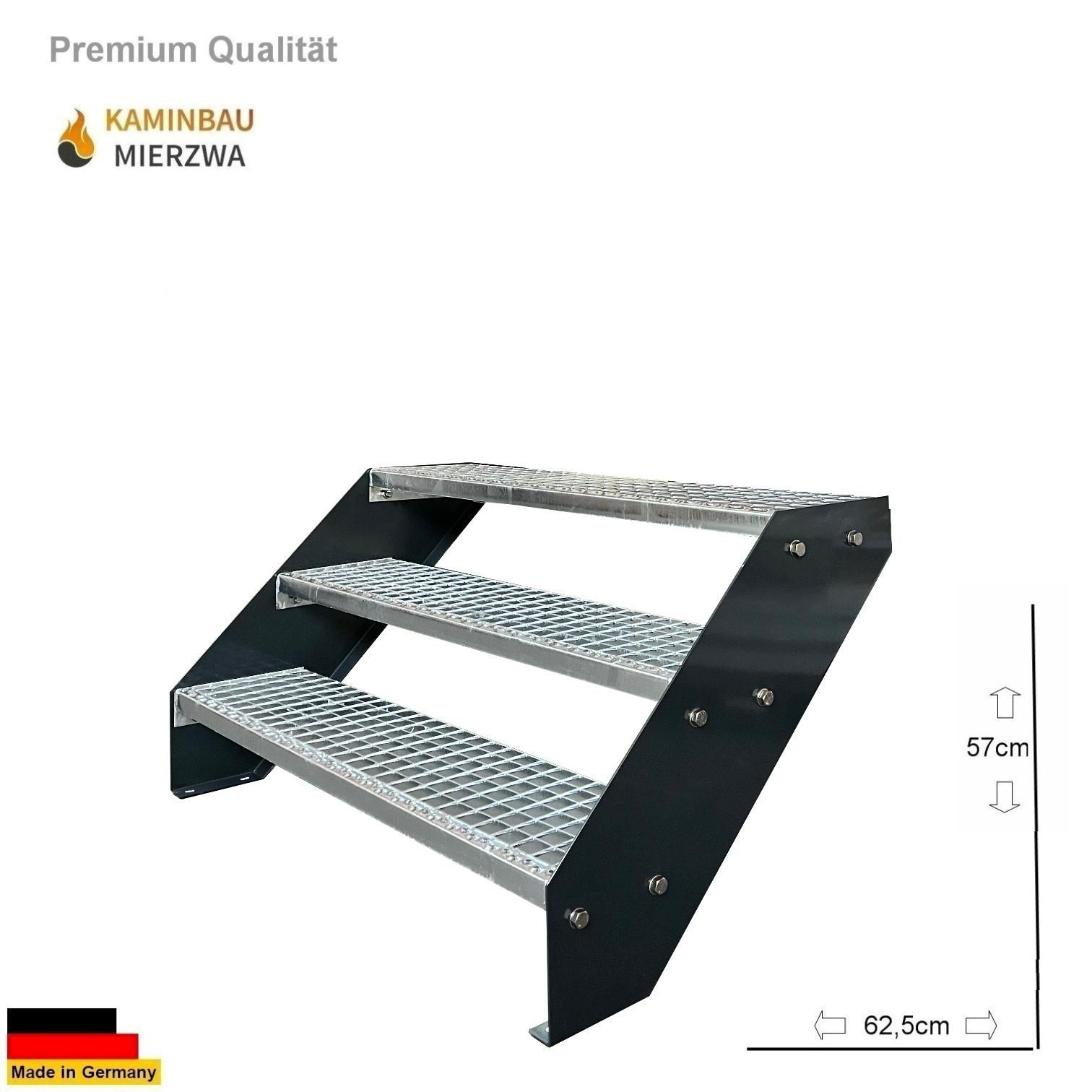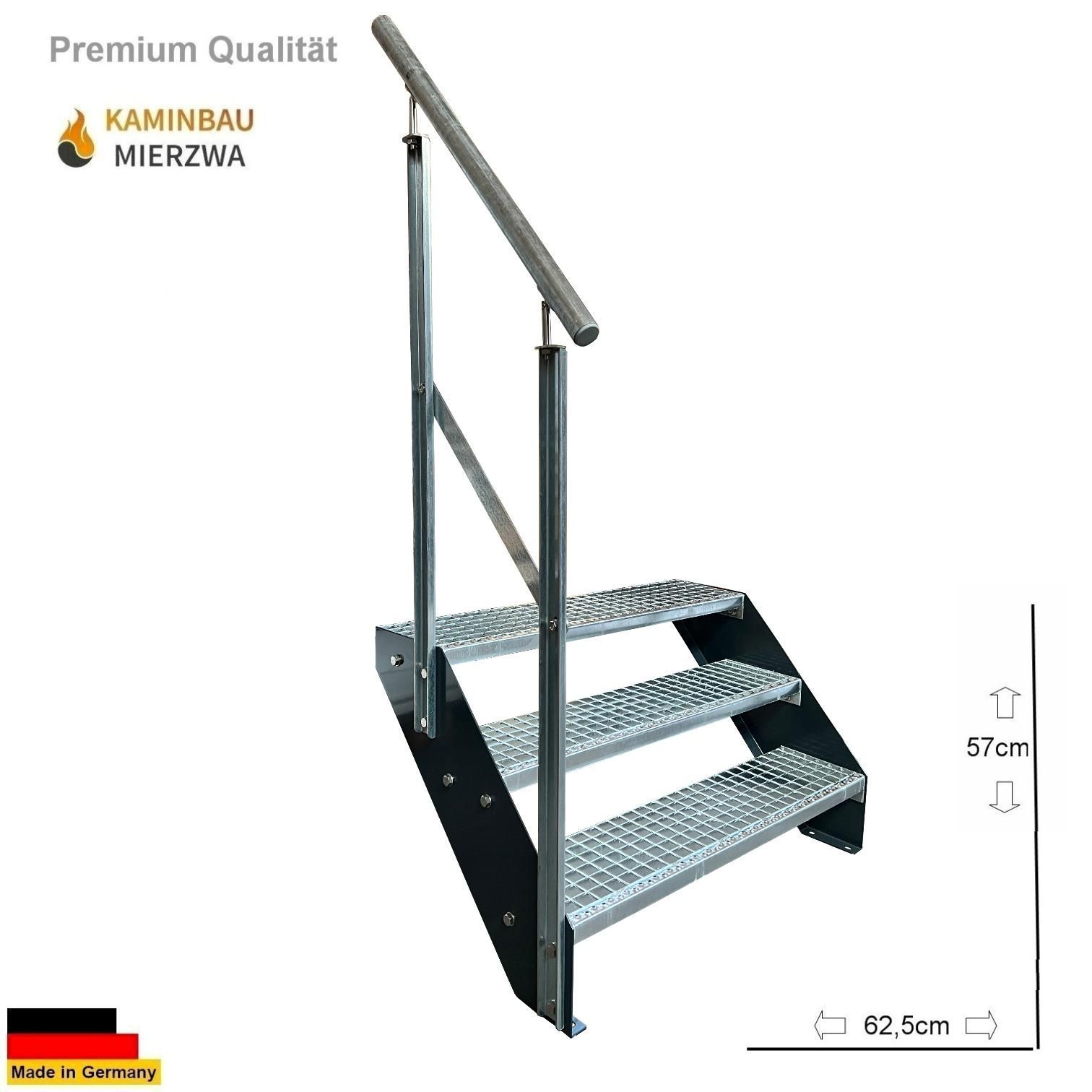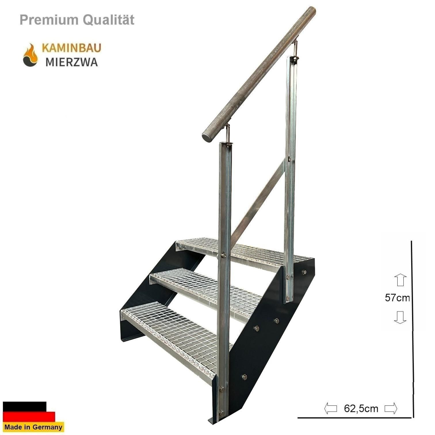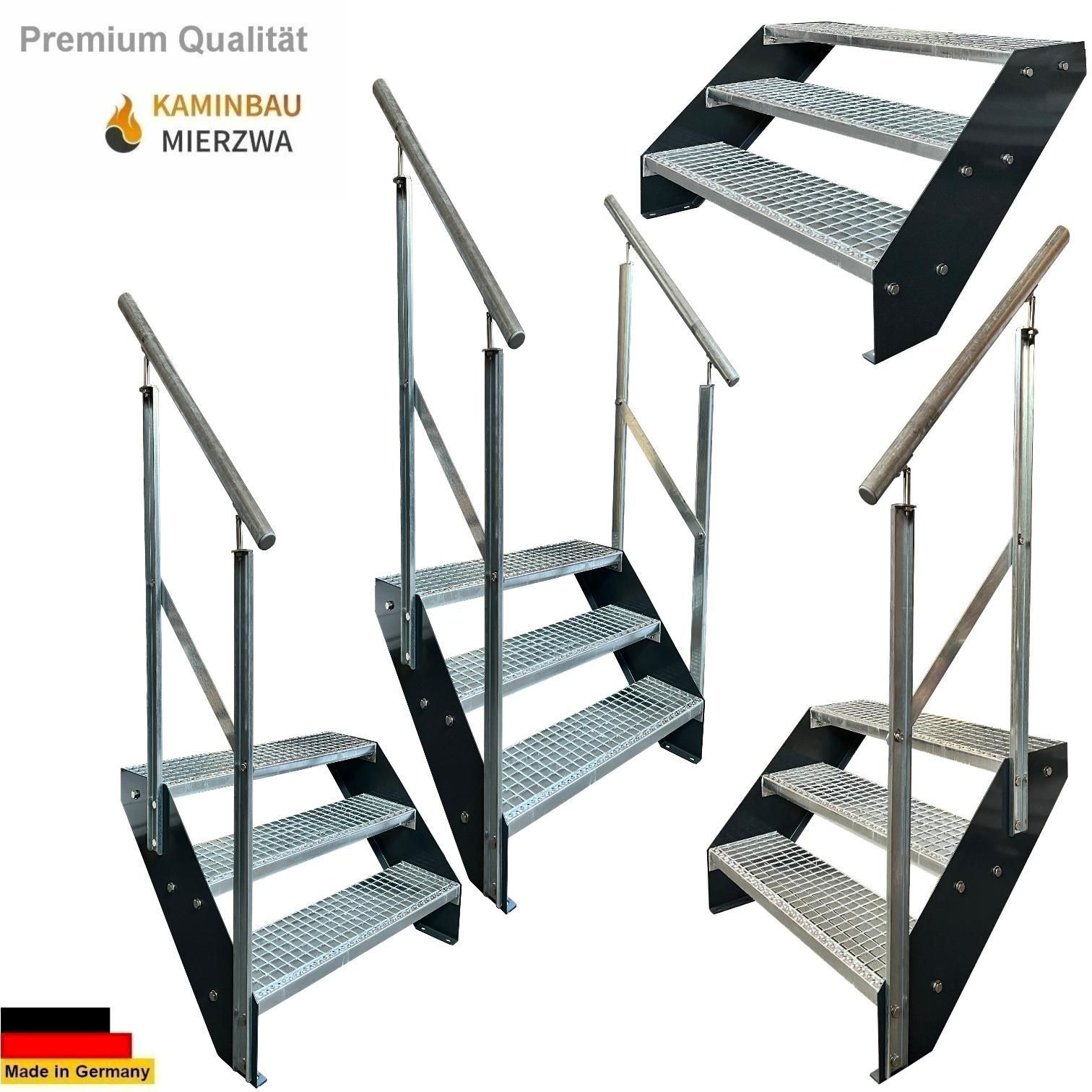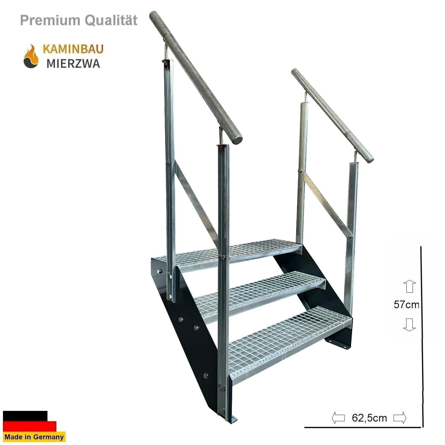 Wangentreppe mit Geländer 3 Stufen Wangen Pulverlackiert H:57cm