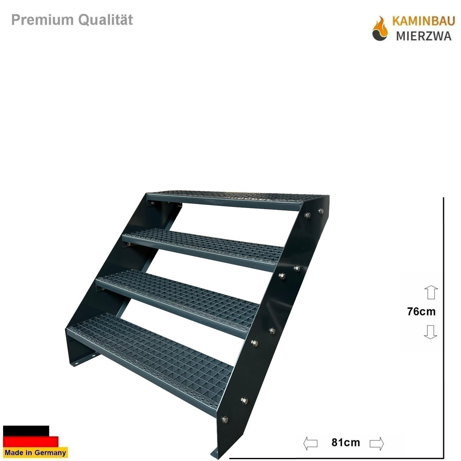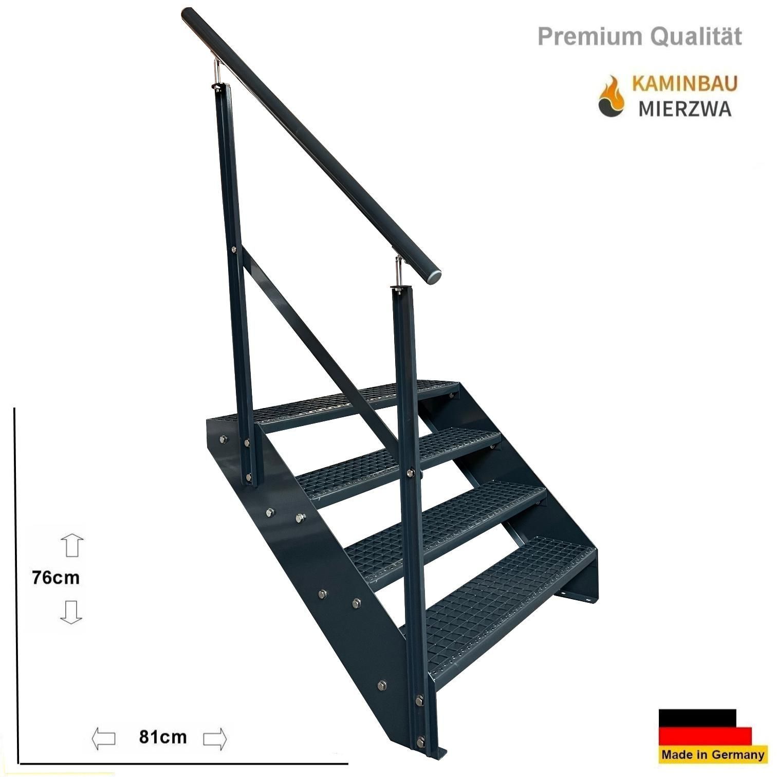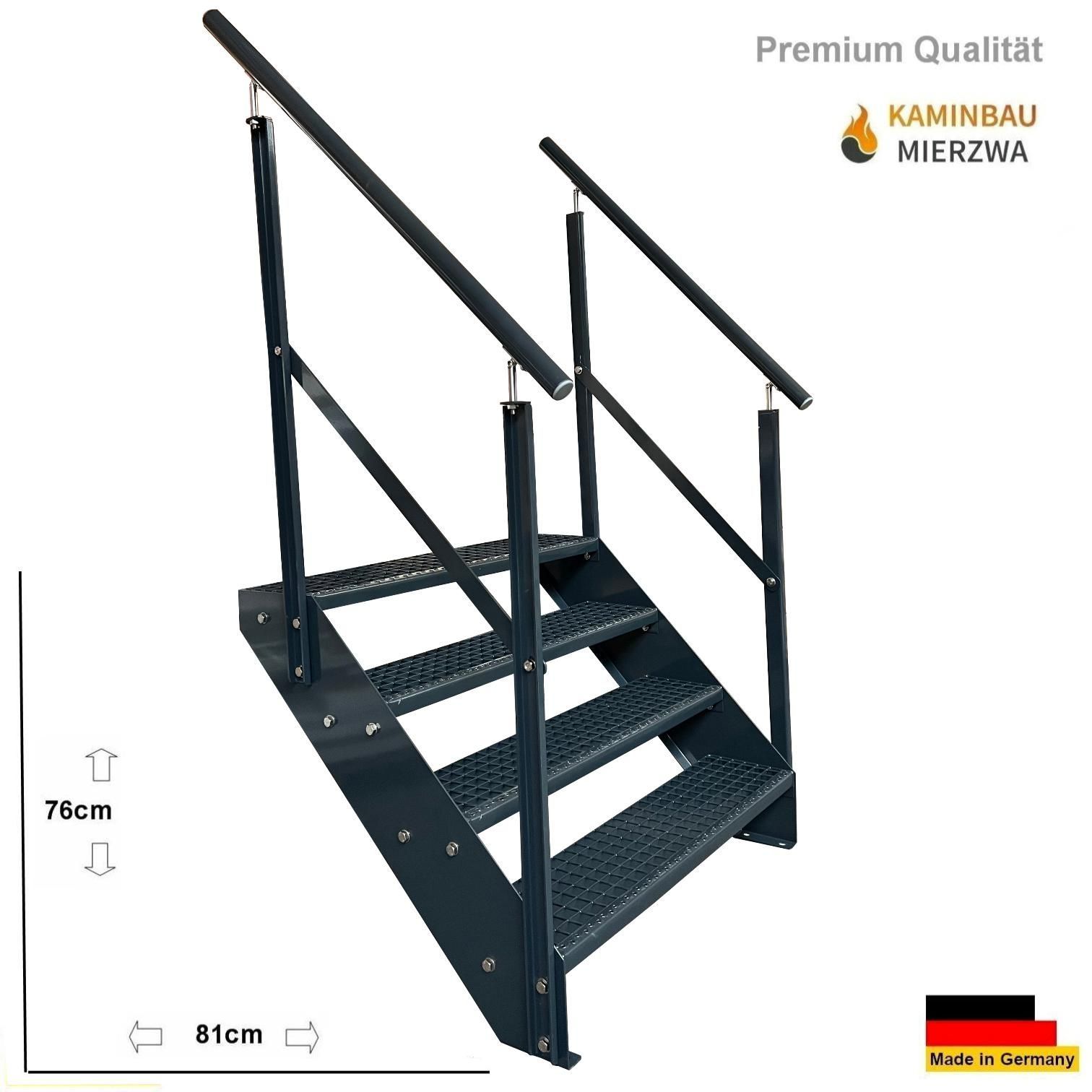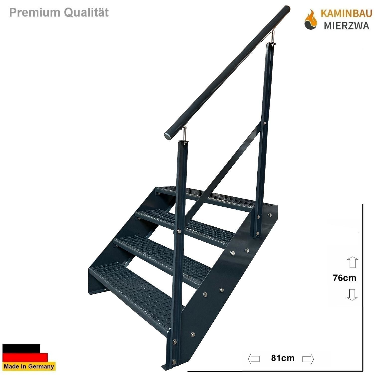 Wangentreppe mit Geländer 4 Stufen Ganz Pulverlackiert H:76cm