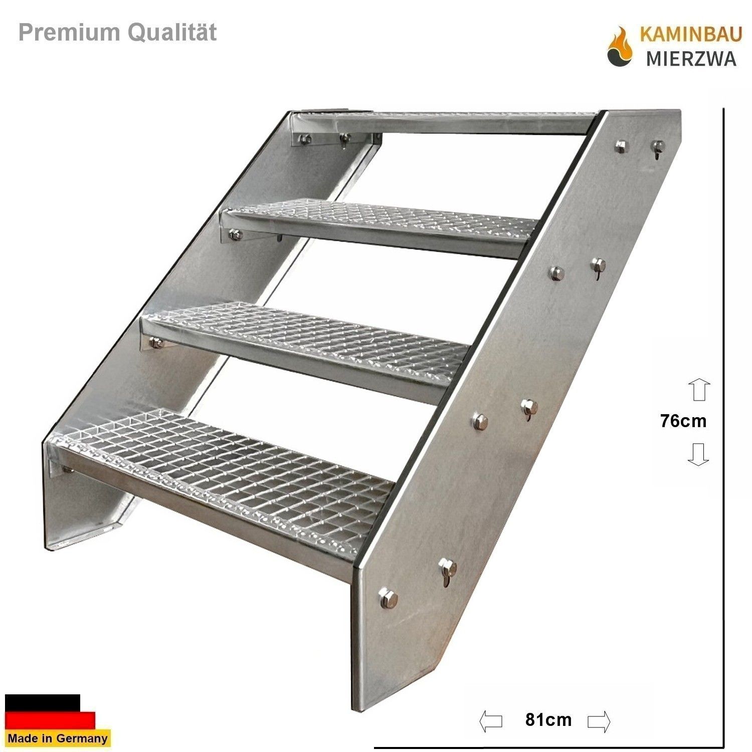 Wangentreppe mit Geländer 4 Stufen Verzinkt H:76cm
