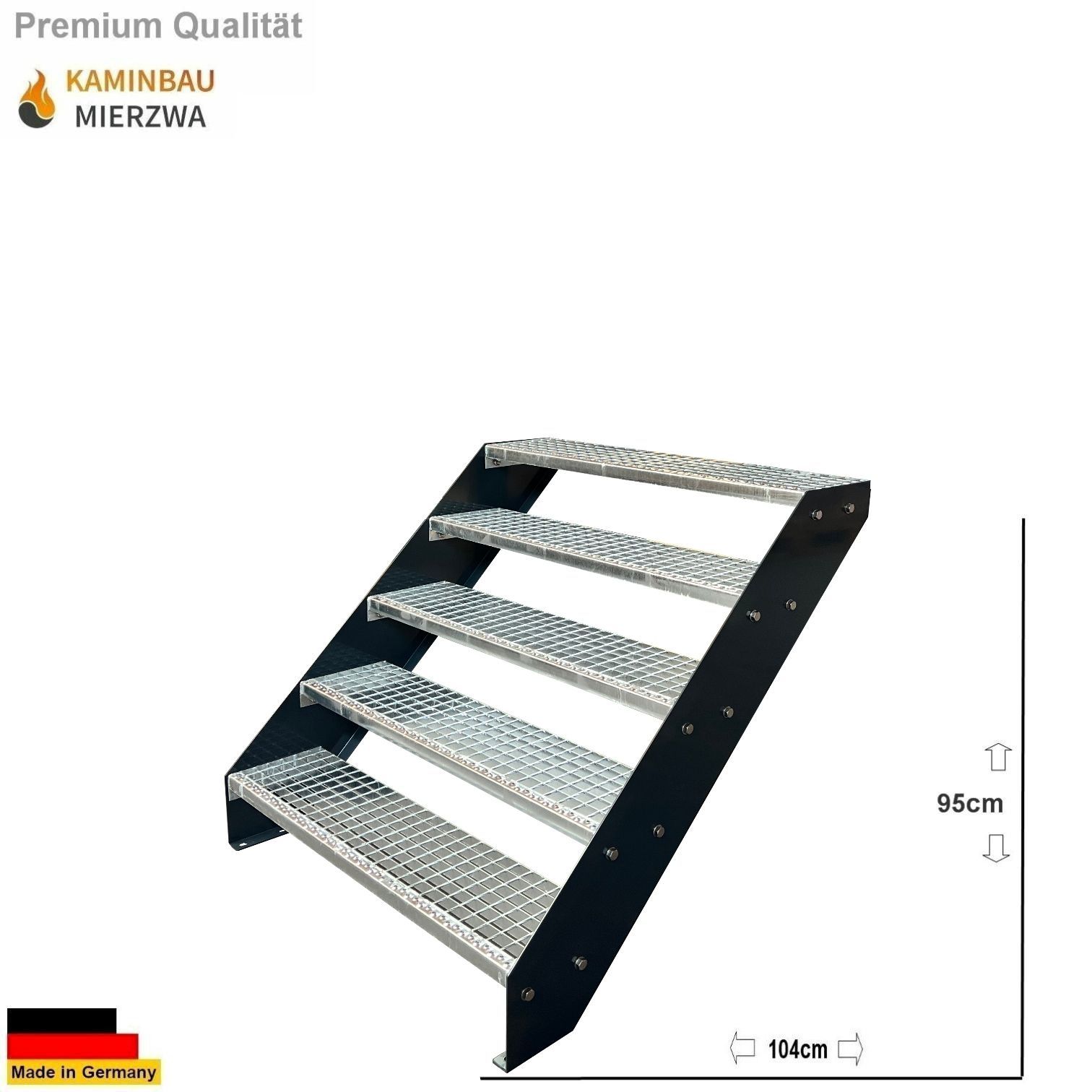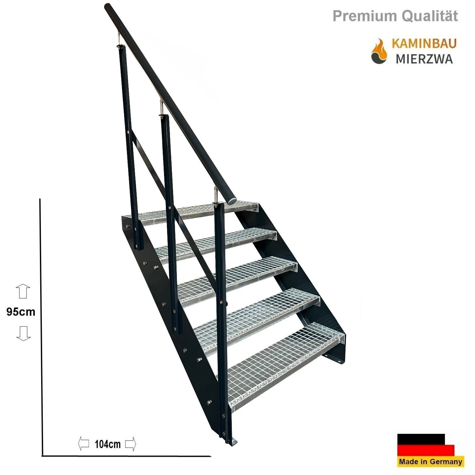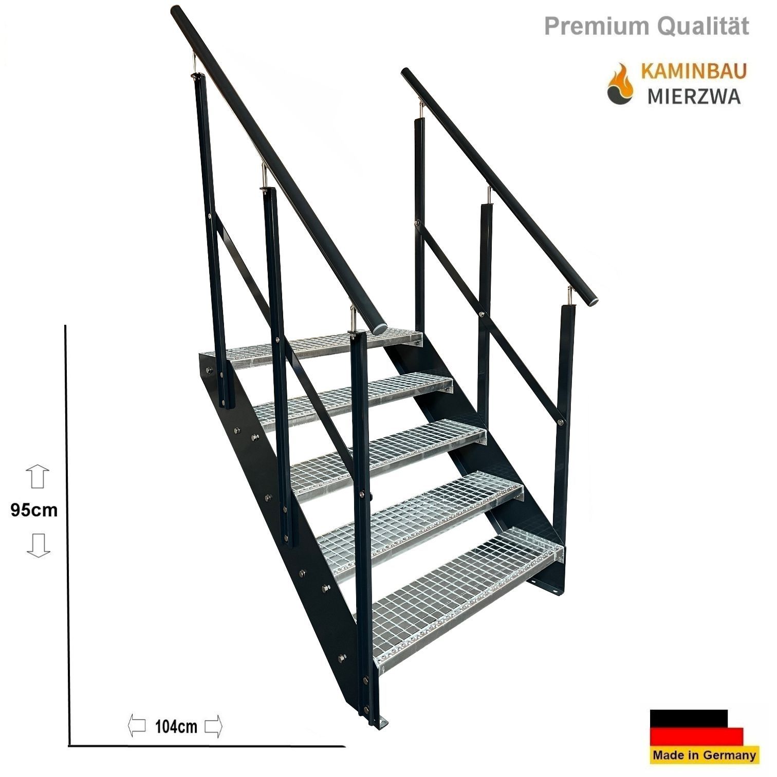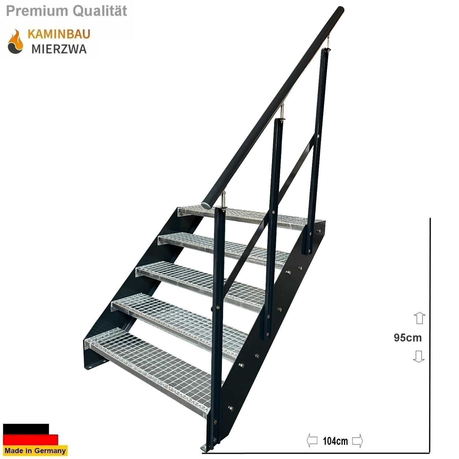 Wangentreppe mit Geländer 5 Stufen Wangen und Geländer Pulverlackiert H:95cm