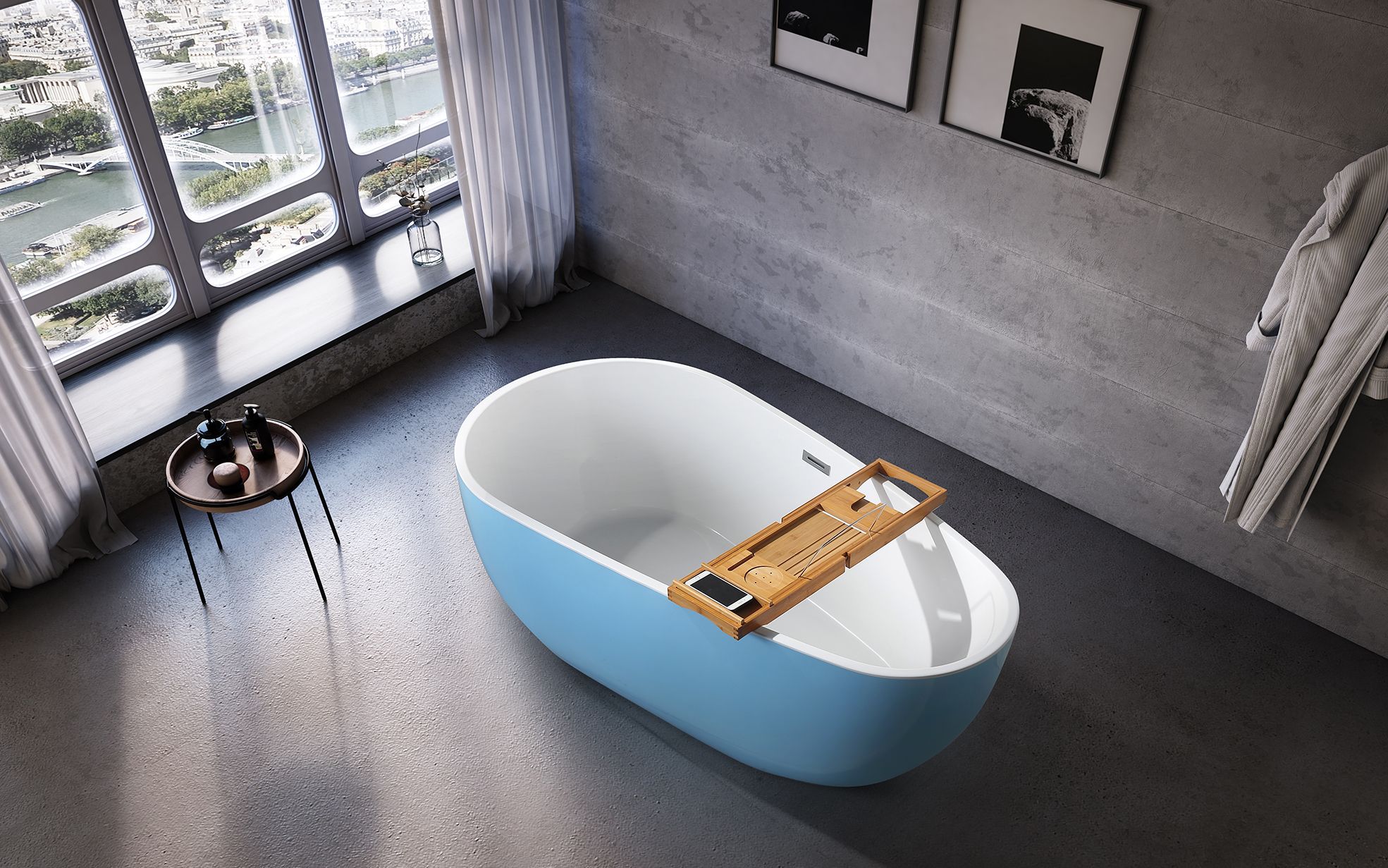 Wanne Standbadewanne Freistehende Badewanne Zeitgenössisch Blau Oval