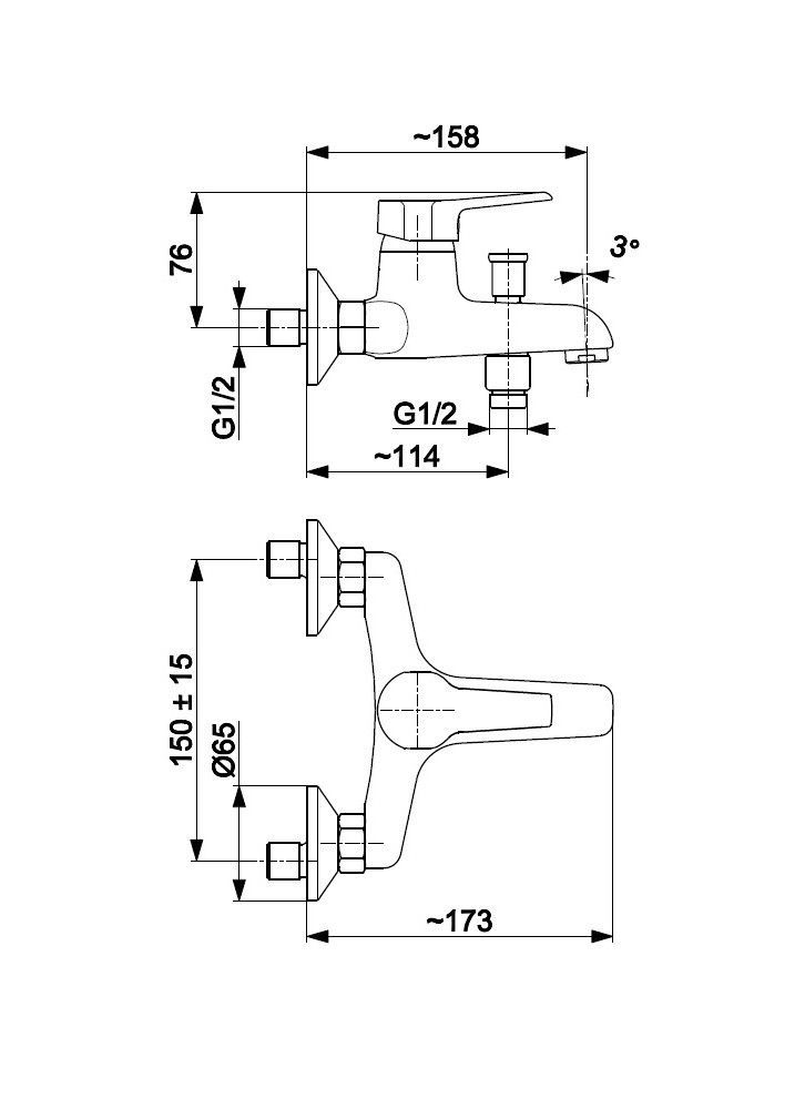 Wannenarmatur Einhebel Mischbatterie mit Keramikmischsystem in Chrom