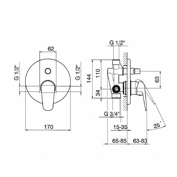 • Planet Wannenarmatur für Unterputzmontage • Komplett Set inkl Einbaukörper • mit automatischem Umsteller