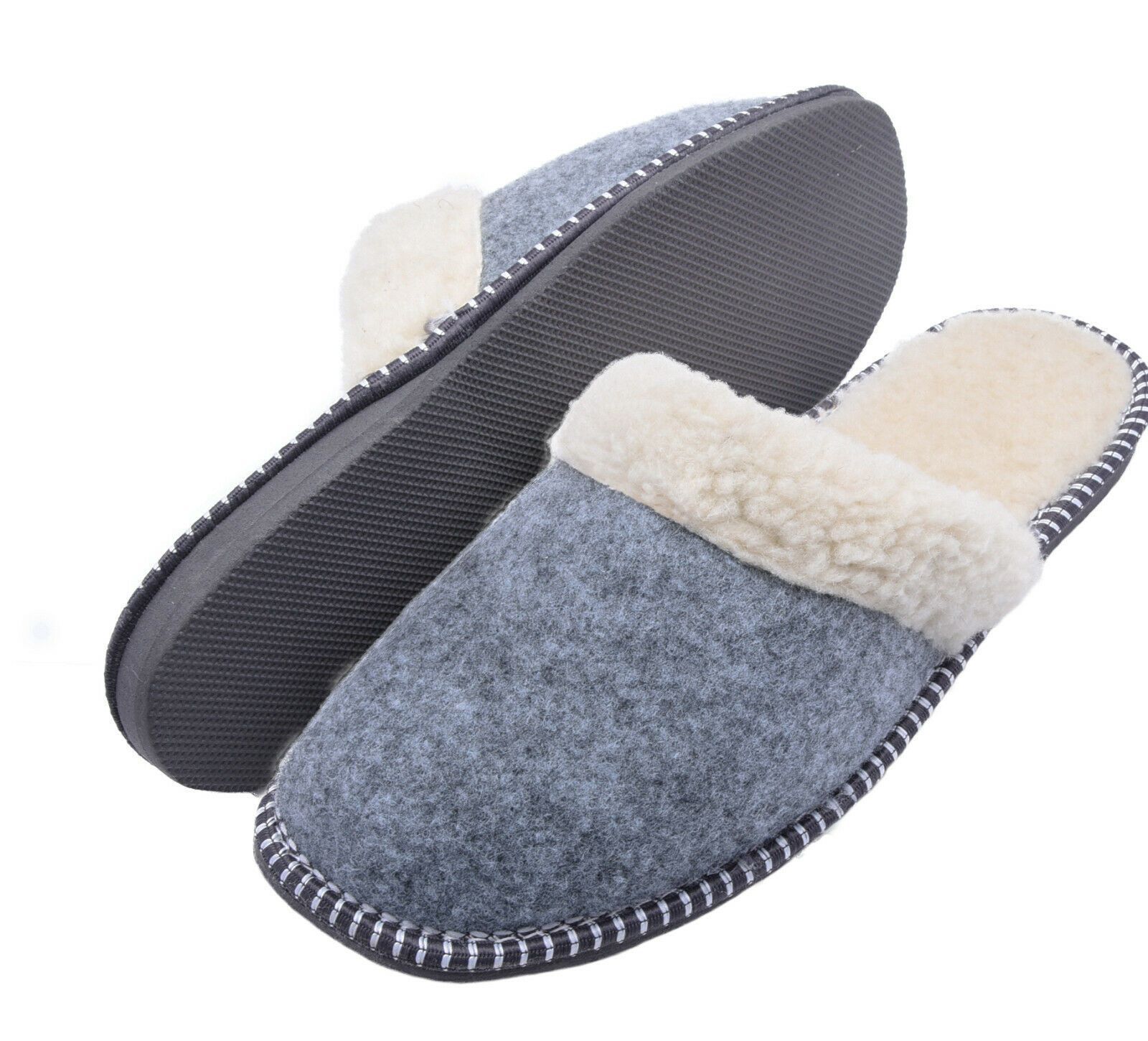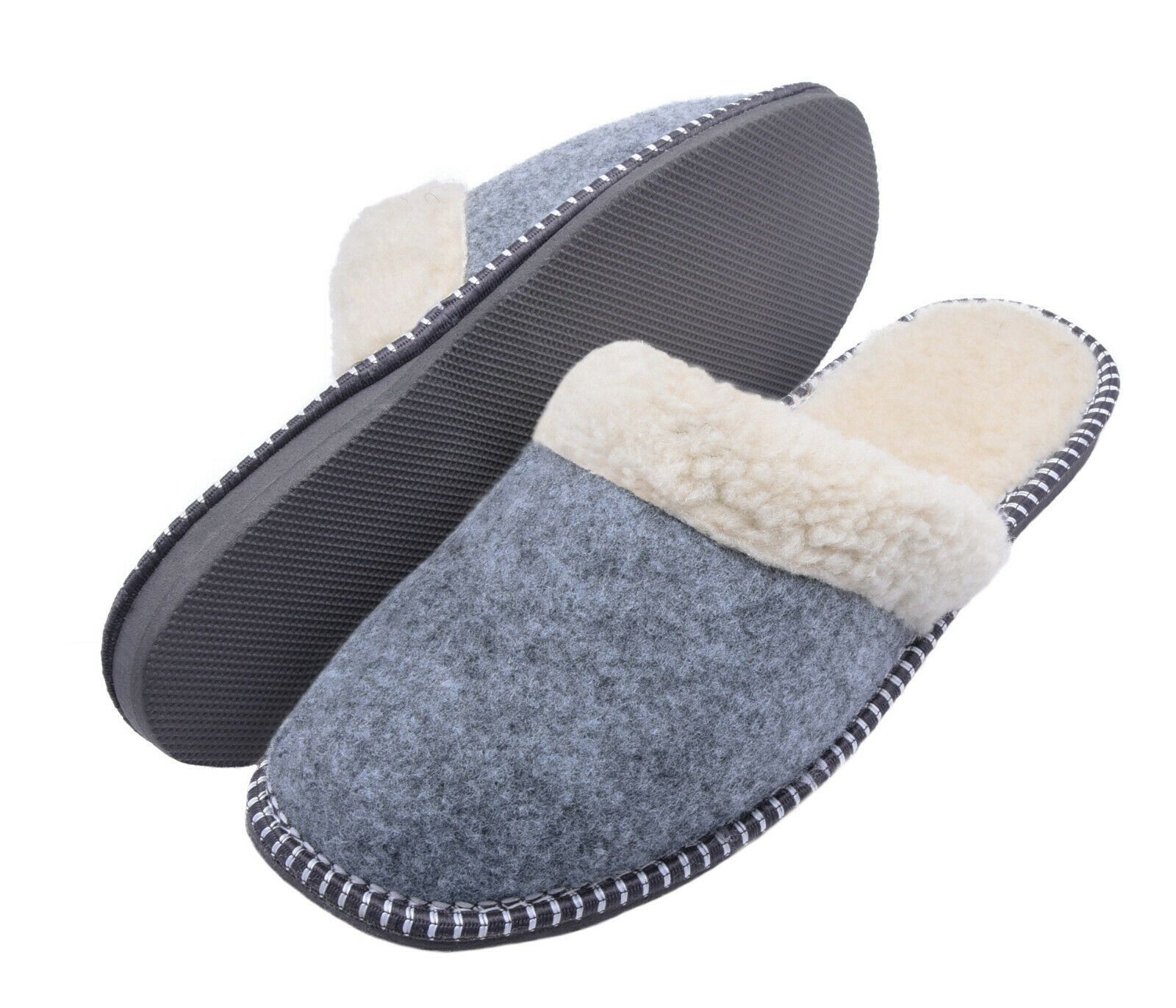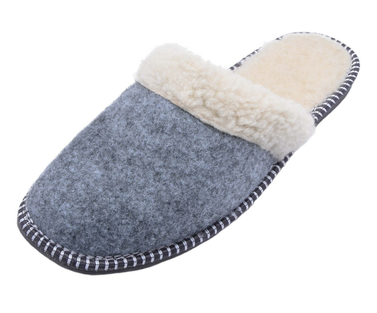 Warme Filzpantoffeln mit Lammwolle Wollfilz Hausschuhe Latschen Schafwolle Grau 05