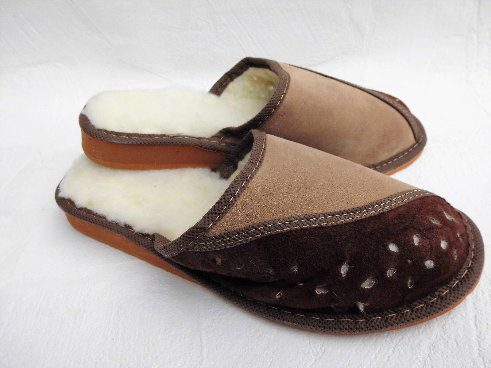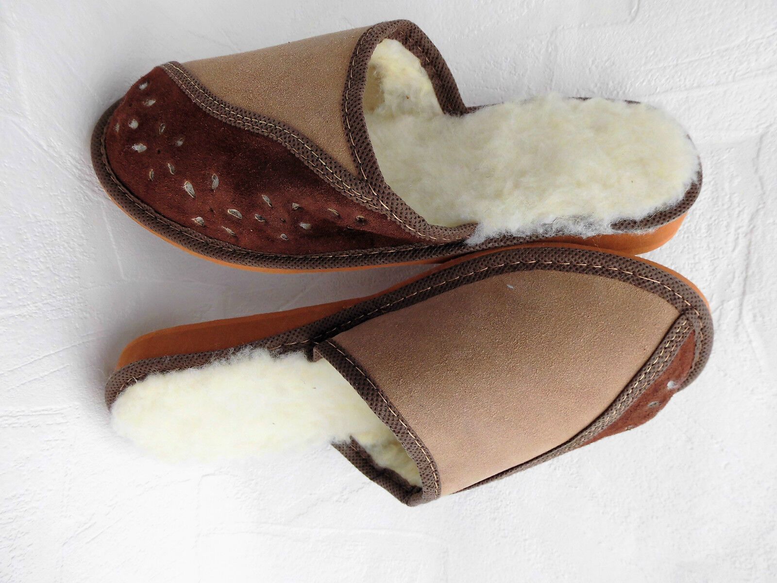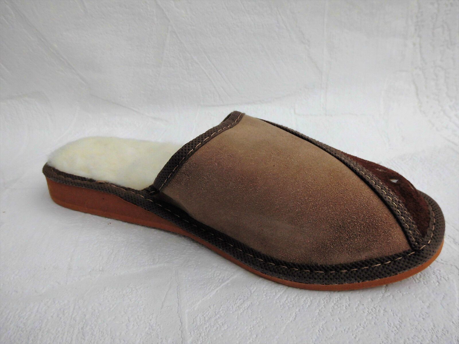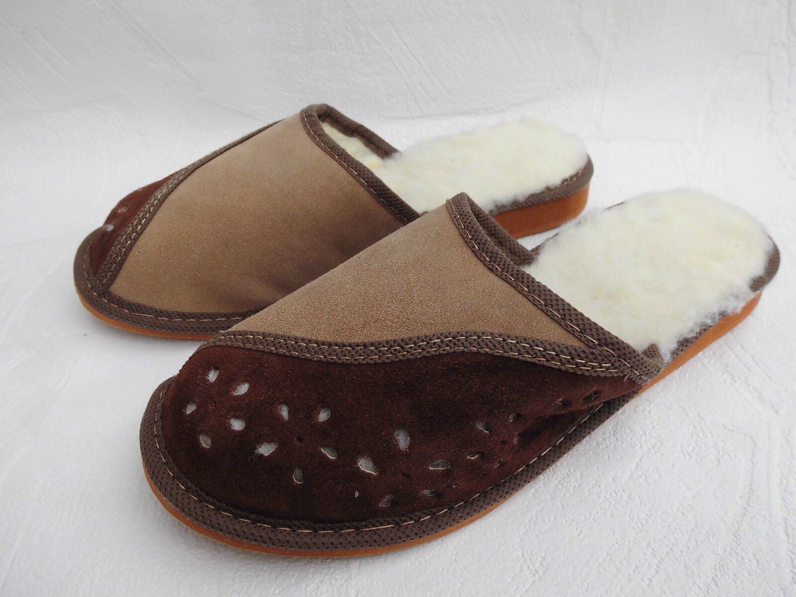 Sehr schöne und bequeme Hausschuhe - Latschen - Pantolette Gr. 41 Die Hausschuhe bestehen außen aus Wild Leder Innen ist der Schuh mit warmer Schurwolle gefüttert Die Sohle besteht aus Gummi (rutschfest) Absatz ca 2,5 cm Sehr leicht und bequem Neu, stabile Ausführung Made in Poland Schauen Sie bitte