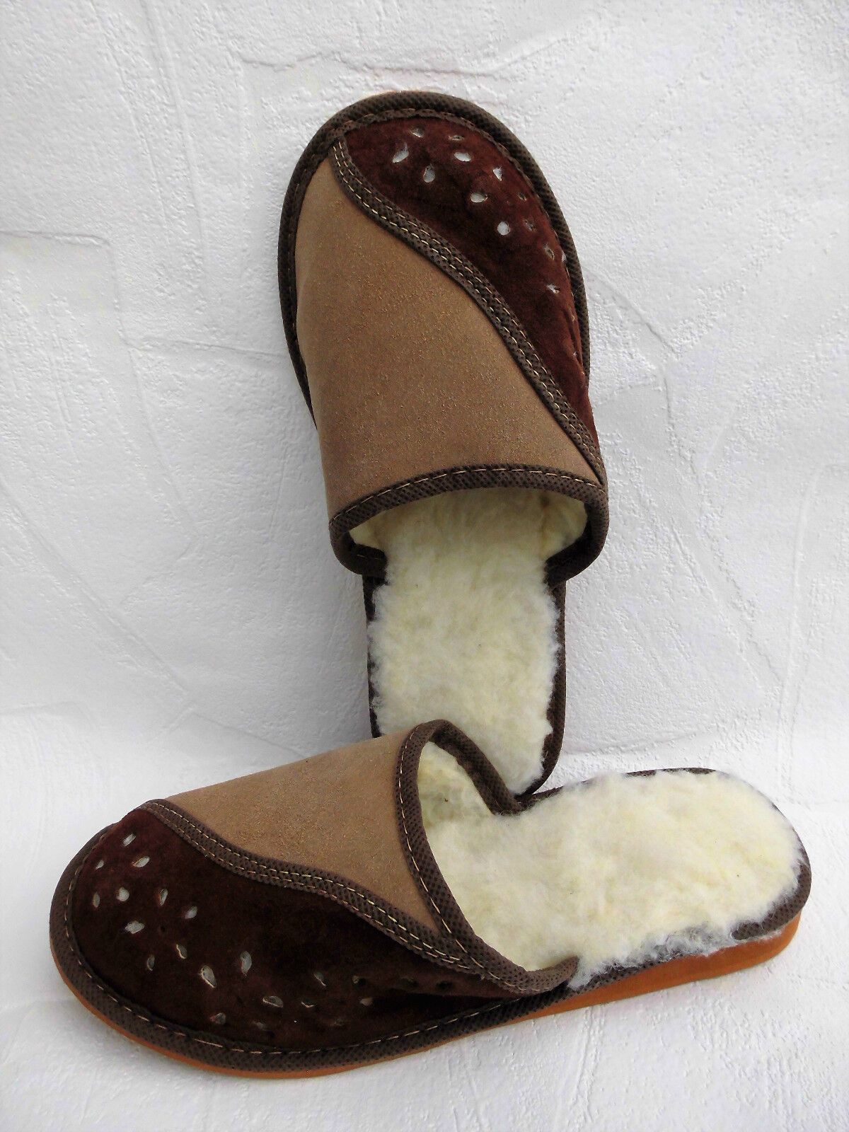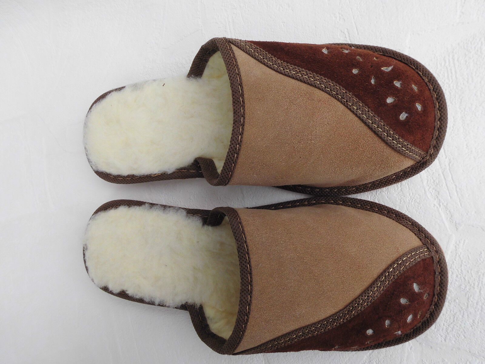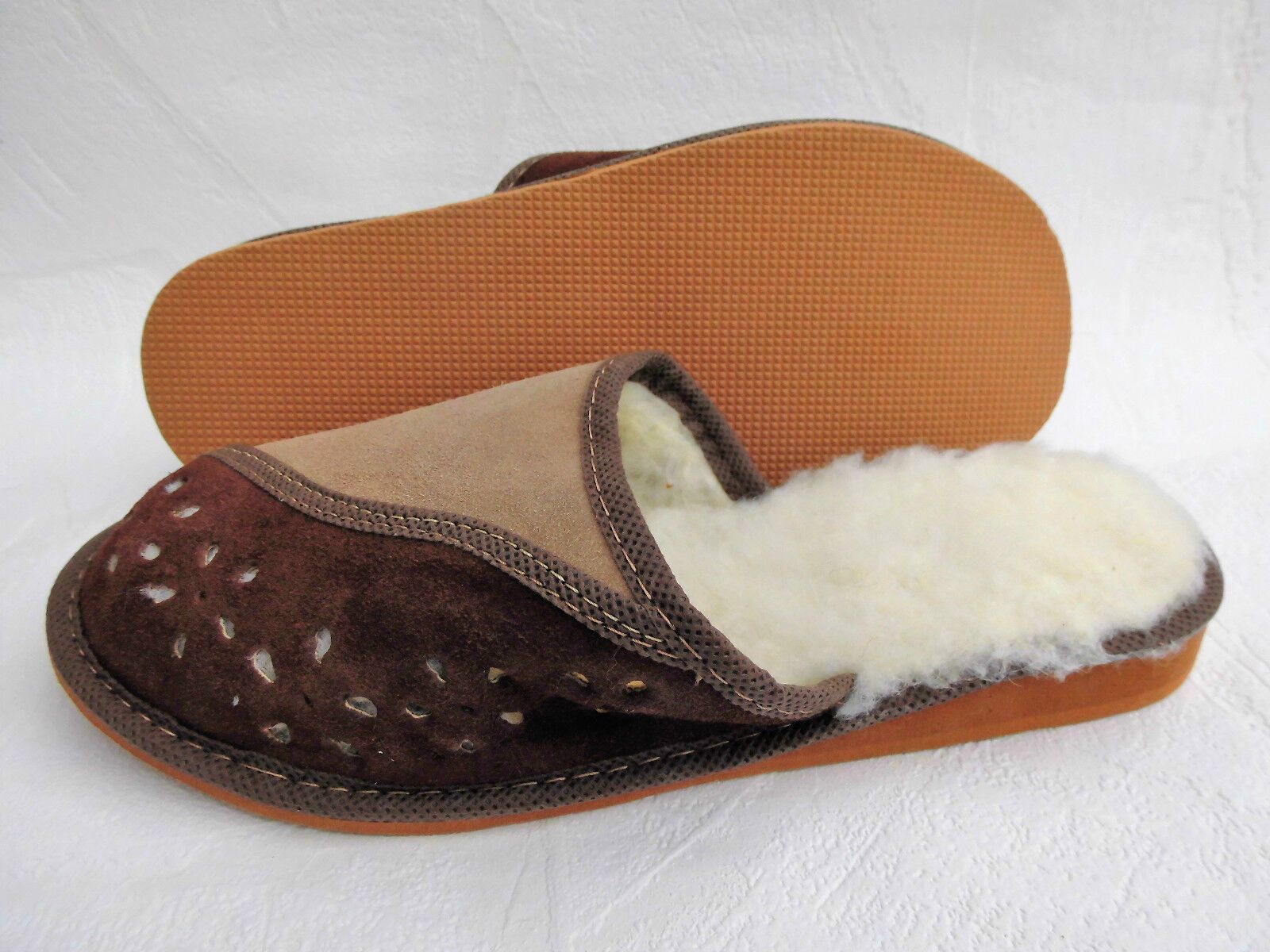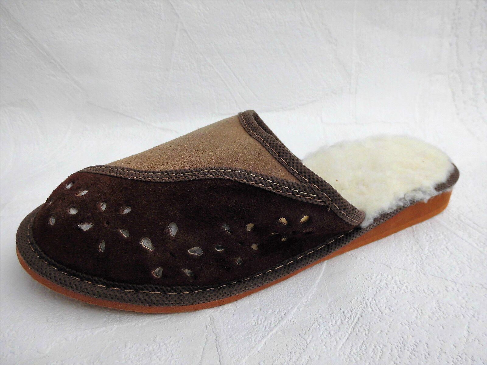 Sehr schöne und bequeme Hausschuhe - Latschen - Pantolette Gr. 41 Die Hausschuhe bestehen außen aus Wild Leder Innen ist der Schuh mit warmer Schurwolle gefüttert Die Sohle besteht aus Gummi (rutschfest) Absatz ca 2,5 cm Sehr leicht und bequem Neu, stabile Ausführung Made in Poland Schauen Sie bitte