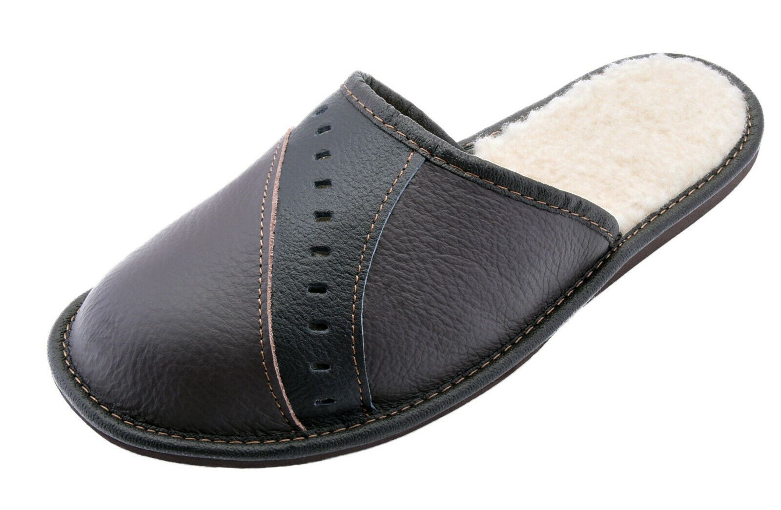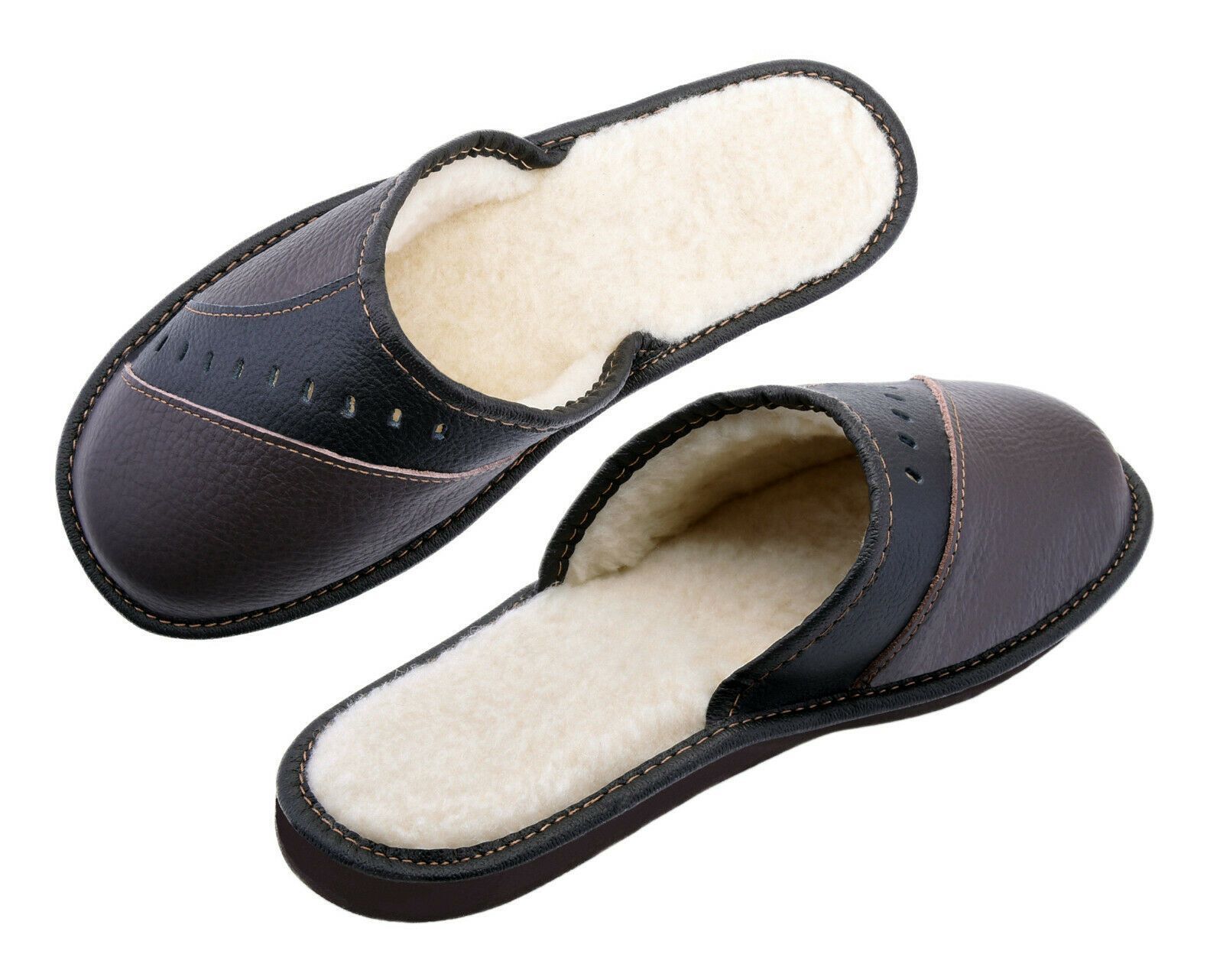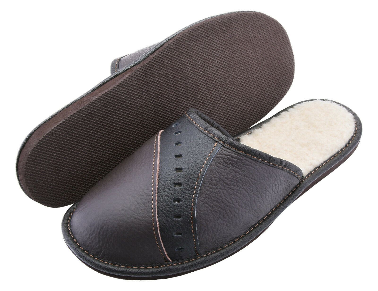 Warme Lederpantoffeln mit Lammwolle Hausschuhe Latschen Schafwolle Braun Schwarz