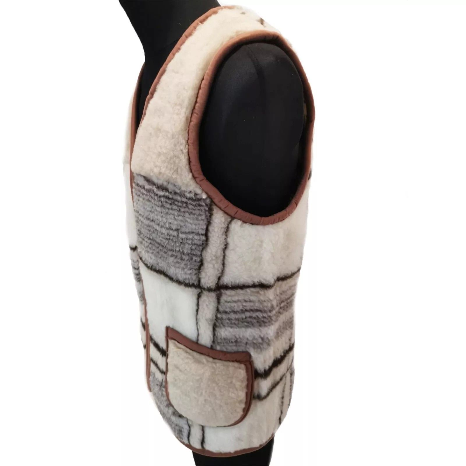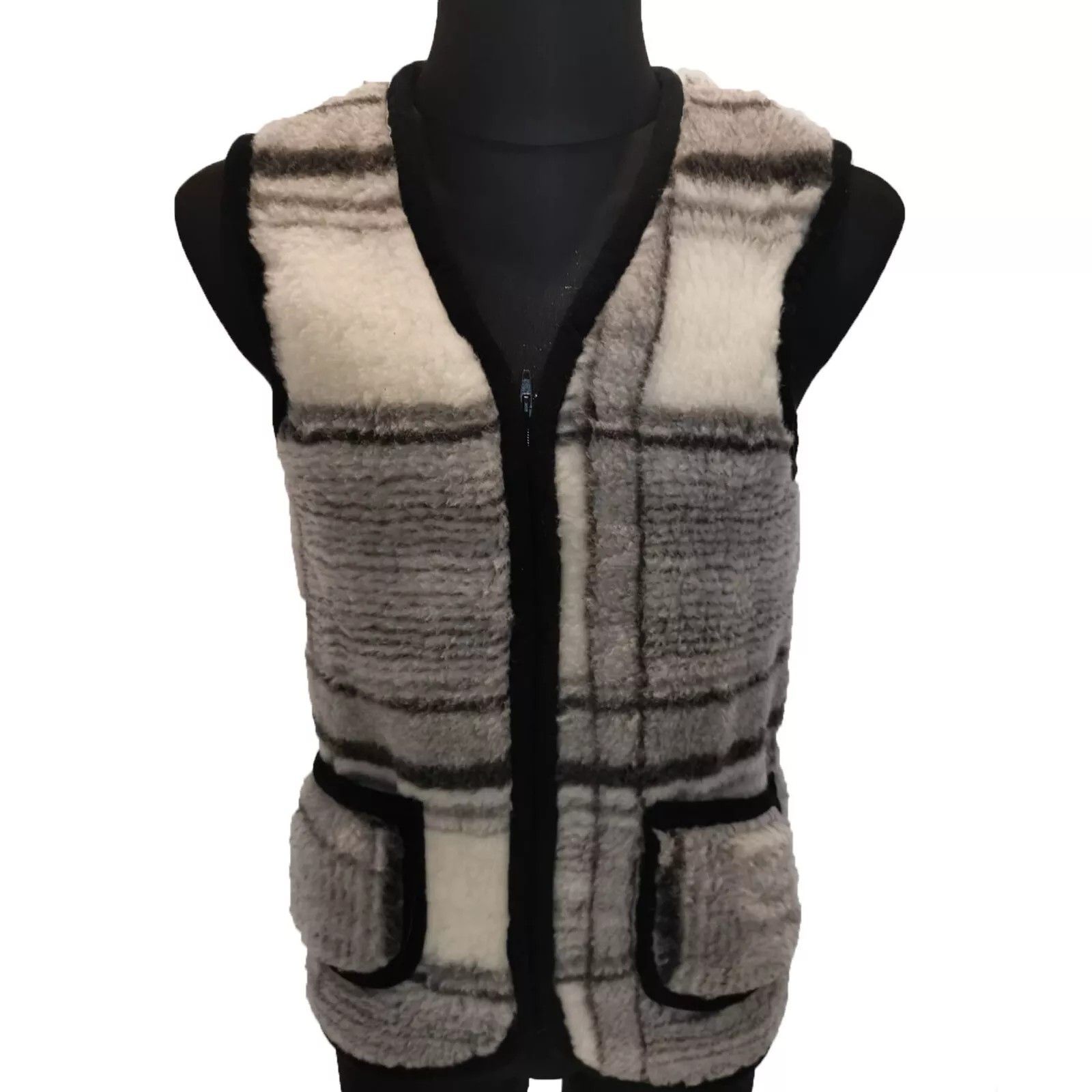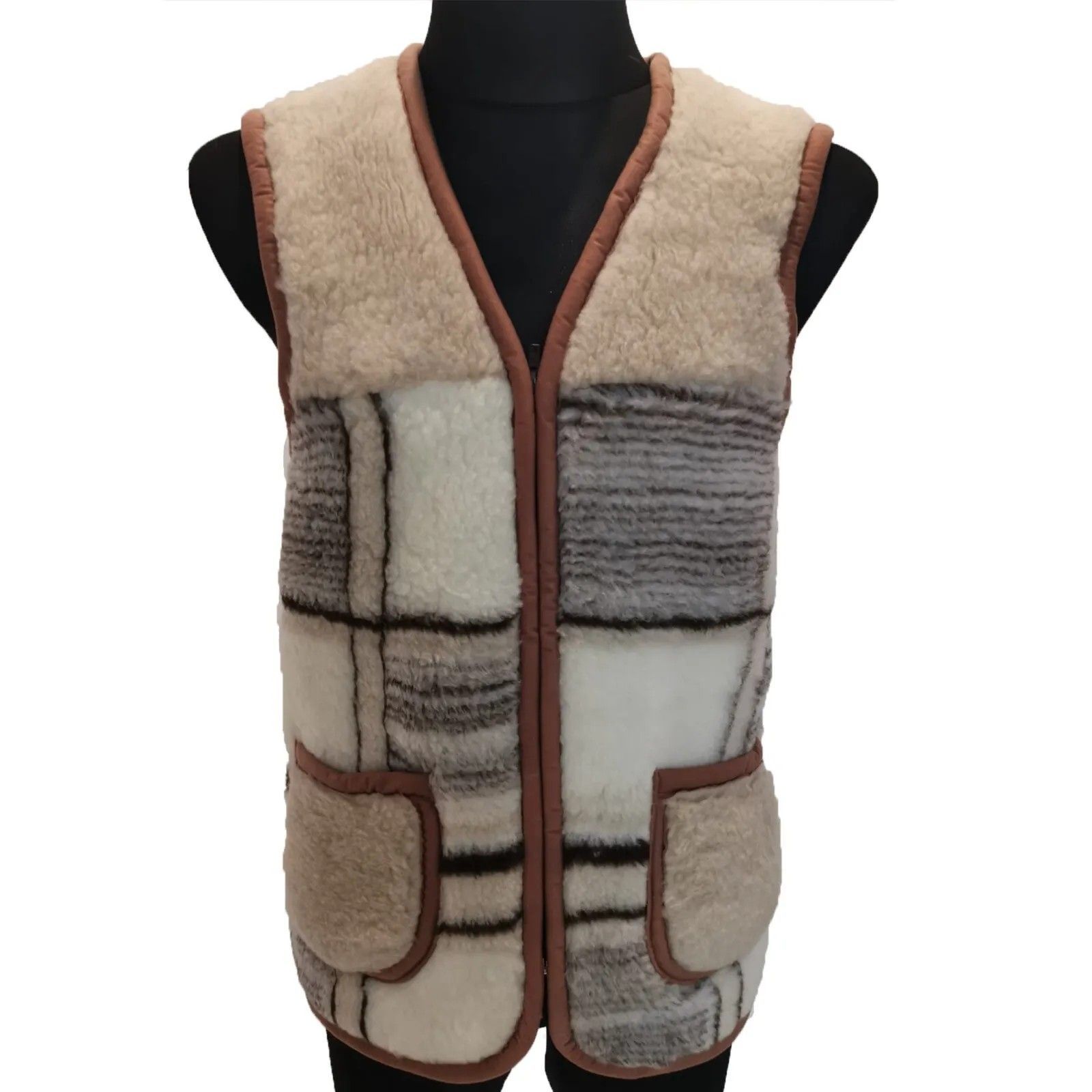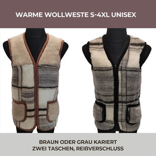 Warme Weste - Wollweste aus Echter Schafwolle Damen Herren grau/braun kariert