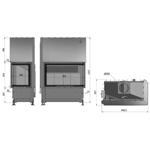 Warmluft-Kamineinsatz Volcano 2BLTH 11kw Linksverglaste Hebetür