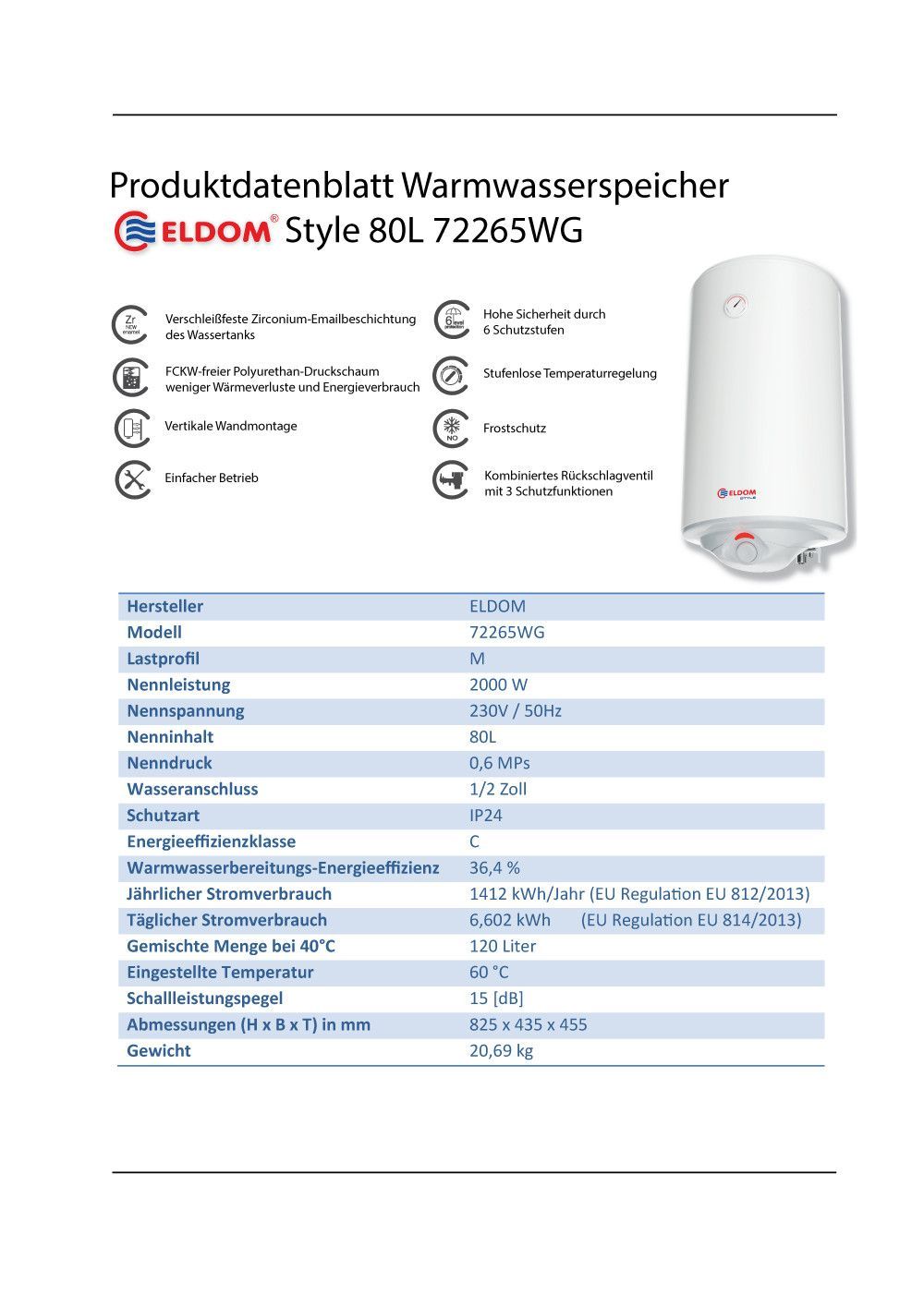 Eldom Warmwasserspeicher Boiler Warmwasserbereiter 80L druckfest Eldom Style
