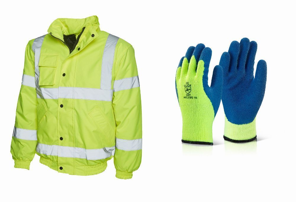 Warnschutz Pilotenjacke gelb S-4XL EN471 + Thermohandschuhe Arbeitshandschuhe