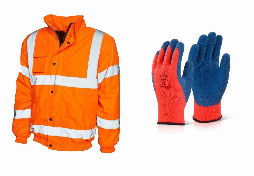 Warnschutz Pilotenjacke orange S-4XL EN471 + Thermohandschuhe Arbeitshandschuhe