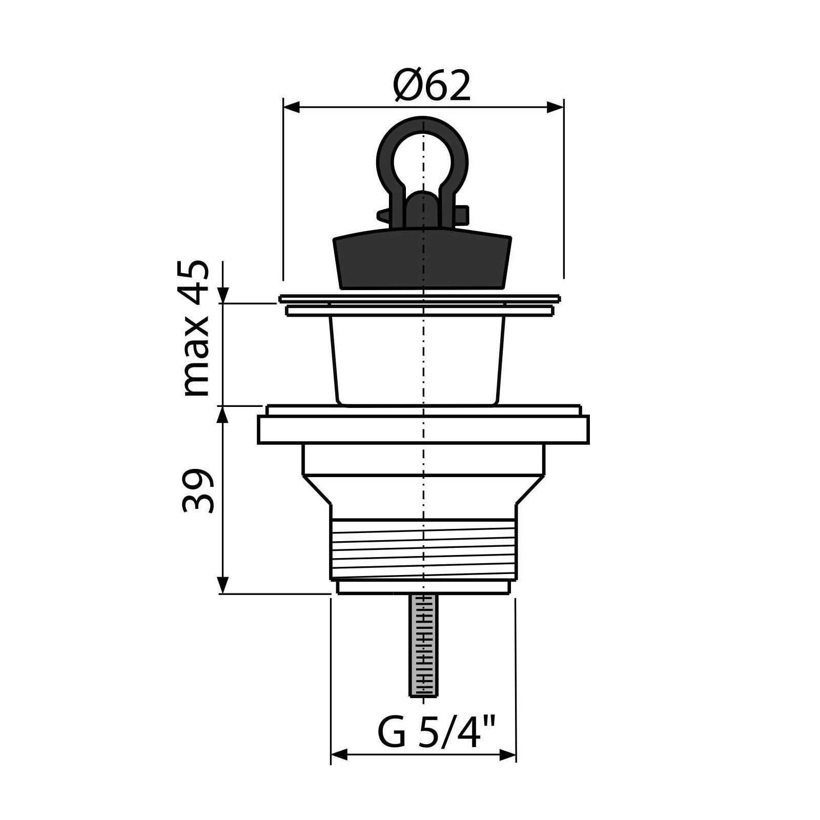 Waschbecken Ablauf Ventil Kunststoff 5/4" Waschtisch ohne Überlauf mit Stöpsel