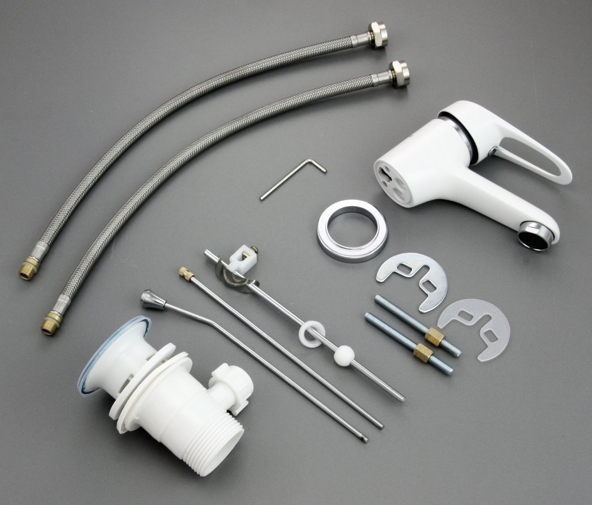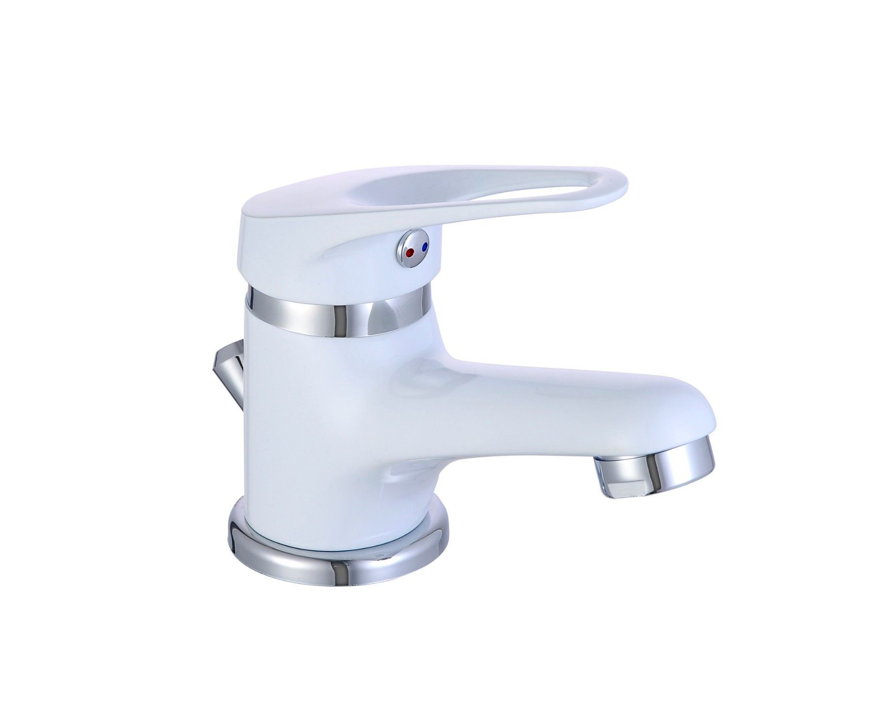 Waschbecken Armatur in weiß, Einhandmischer inkl. Ablaufgarnitur, Badarmatur