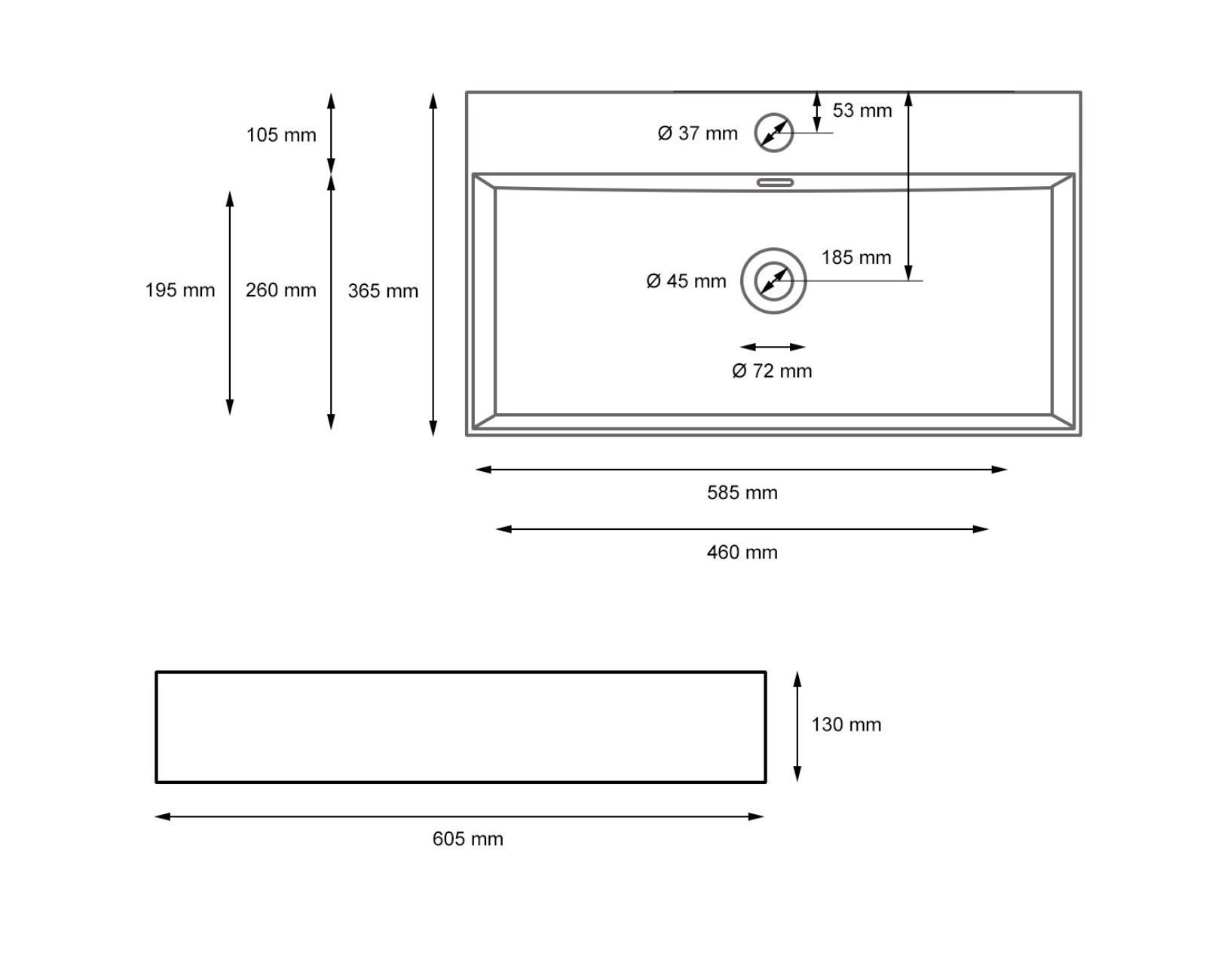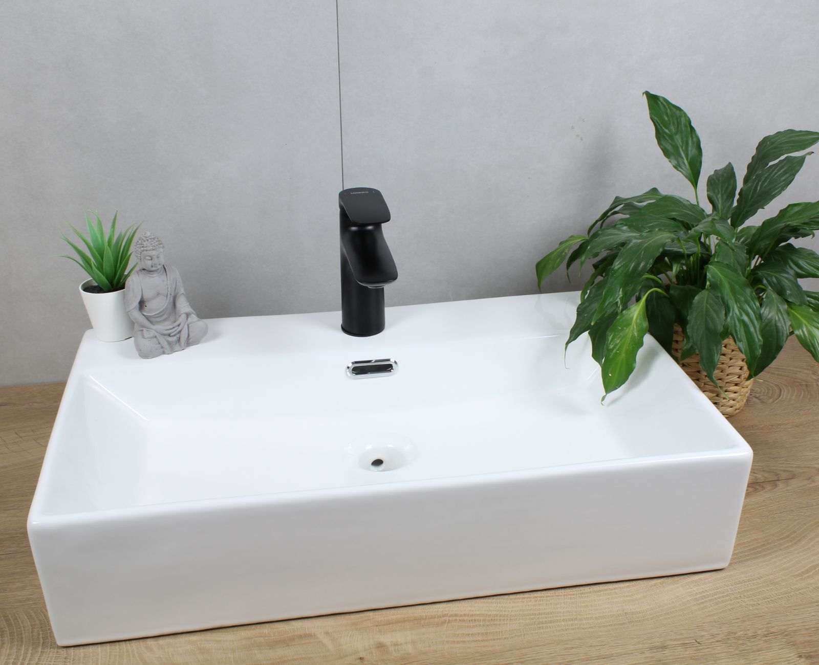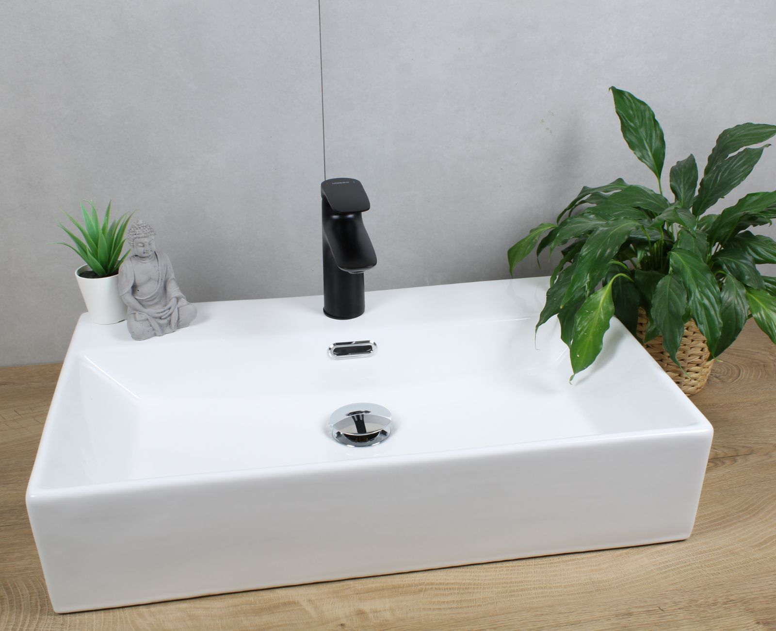 Waschbecken eckig 600x360x130 weiß mit Überlauf Aufsatzwaschbecken Wandmontage