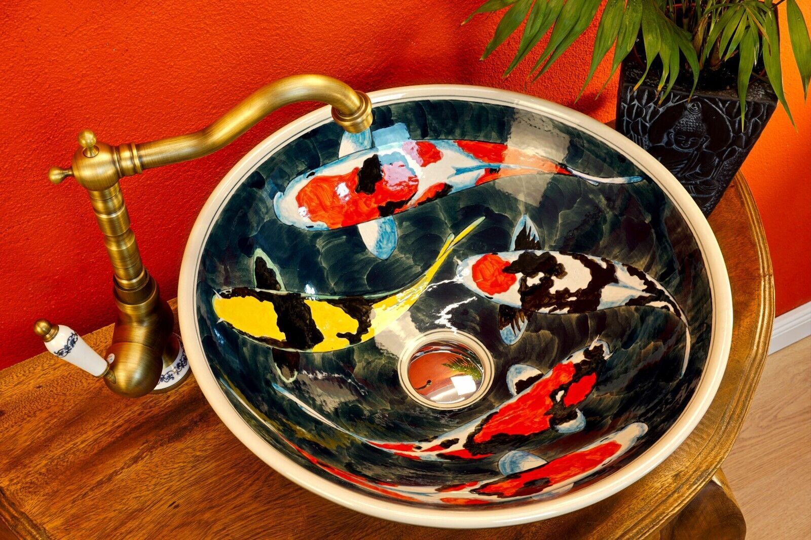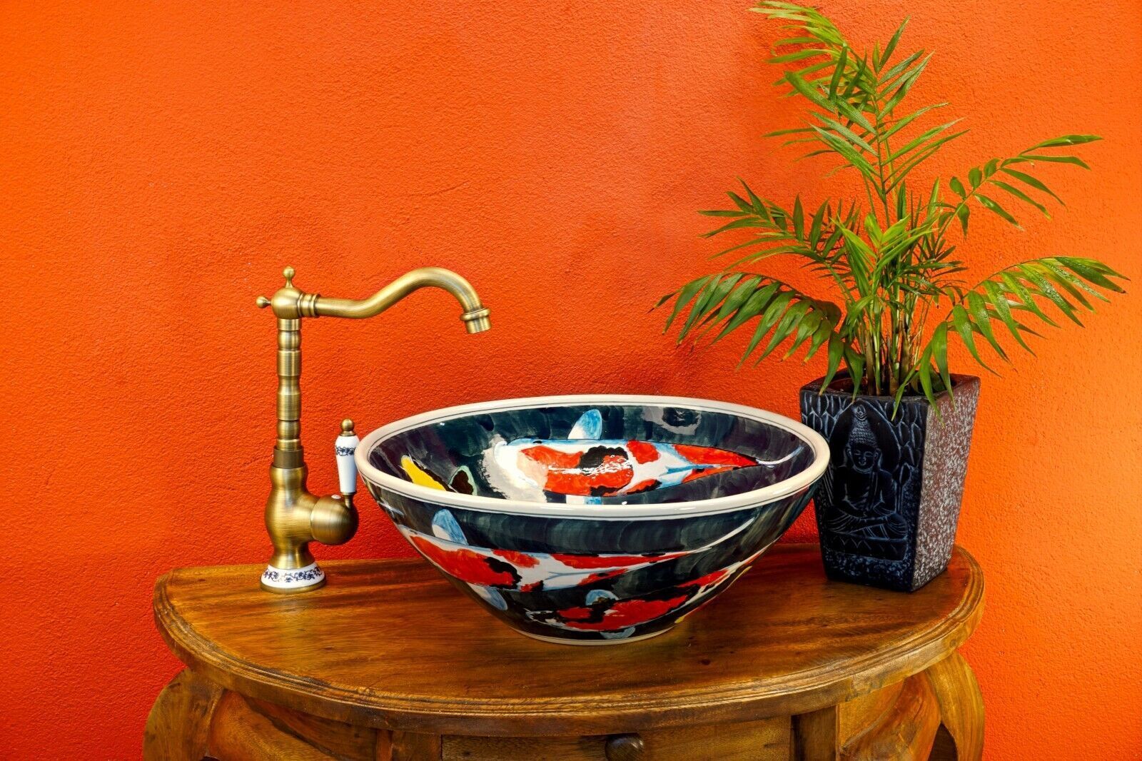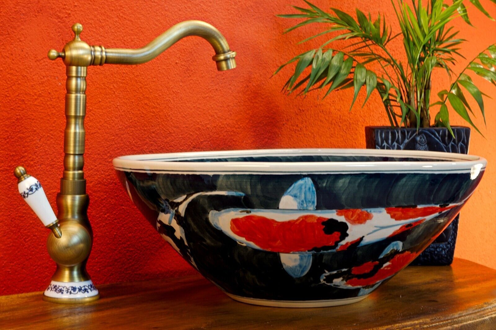 Waschbecken Keramik Antik Stil Aufsatzwaschbecken Waschschale edel rund bemalt