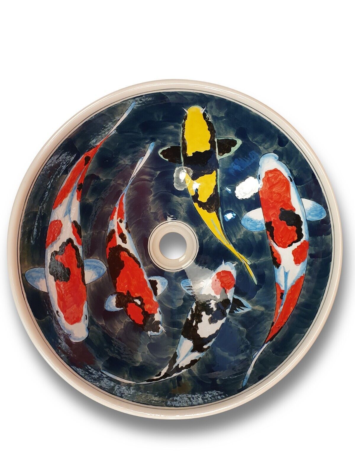 Maße: HxBxT ca 16x41,5x41,5cm | Ø oben 41,5cm | Ø unten 15,5cm Material: Keramik Lieferumfang: 1x Keramik Waschbecken OKINAWA I Herkunftsland: Thailand Abweichungen vom Artikelbild: Farbe / Maserung: gering Form: gering