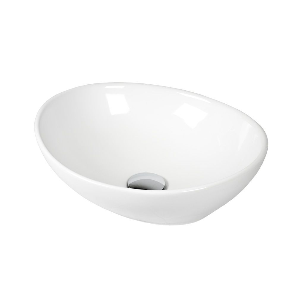 Waschbecken Keramik Aufsatzwaschbecken Oval 41 x 34 cm weiß Komplettset