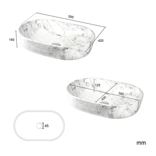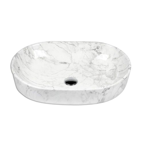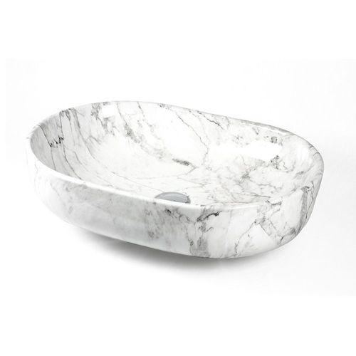 Waschbecken Keramik Marmoroptik Oval 59 x 41 cm Komplettset