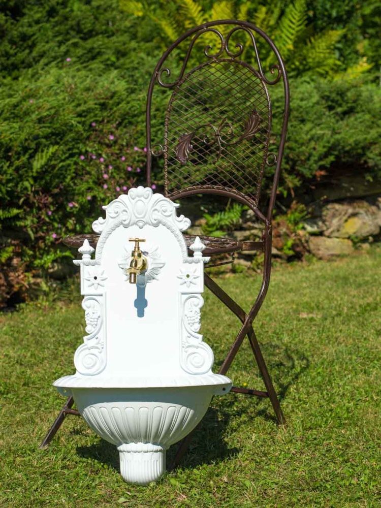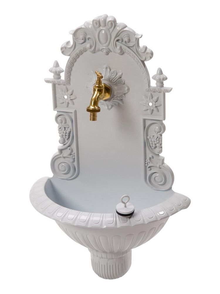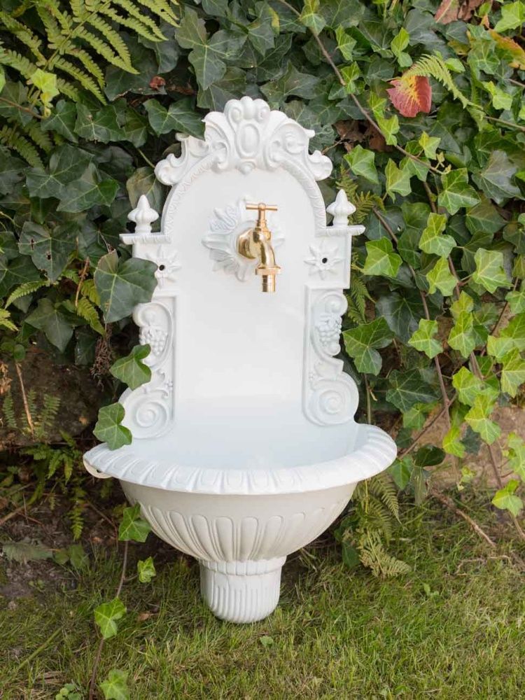 Waschbecken Wein Wandbrunnen Garten Aluminium Becken Brunnen antik Stil weiss