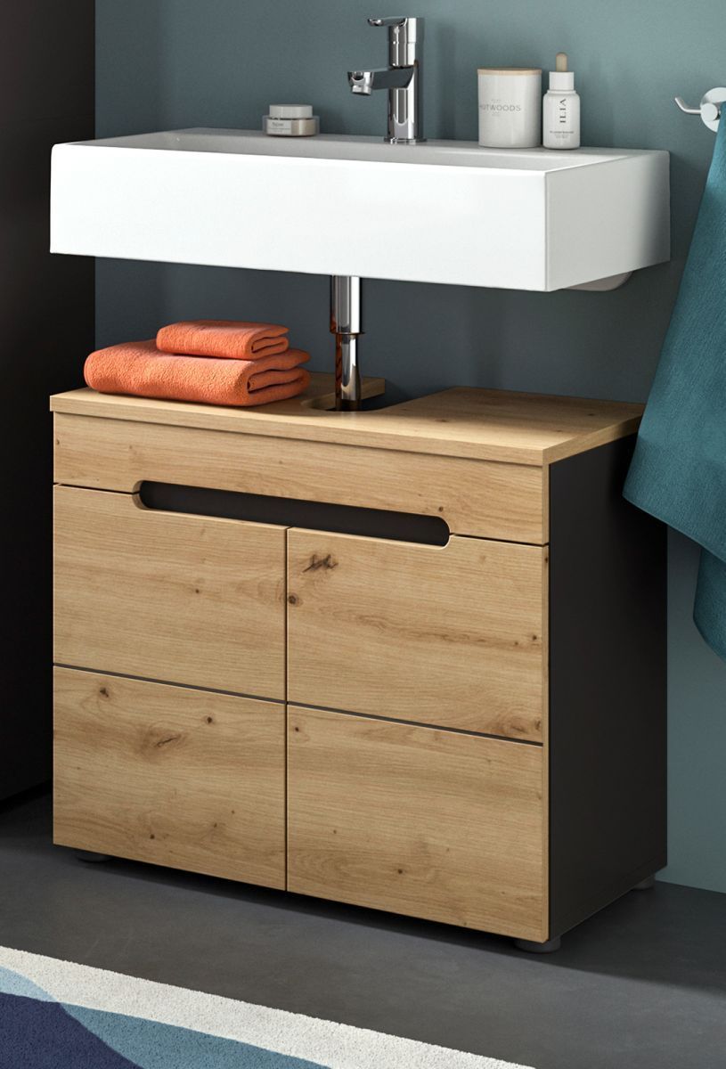 Waschbeckenunterschrank Badezimmer Unterschrank Eiche grau Cooper 63 cm Soft-Close
