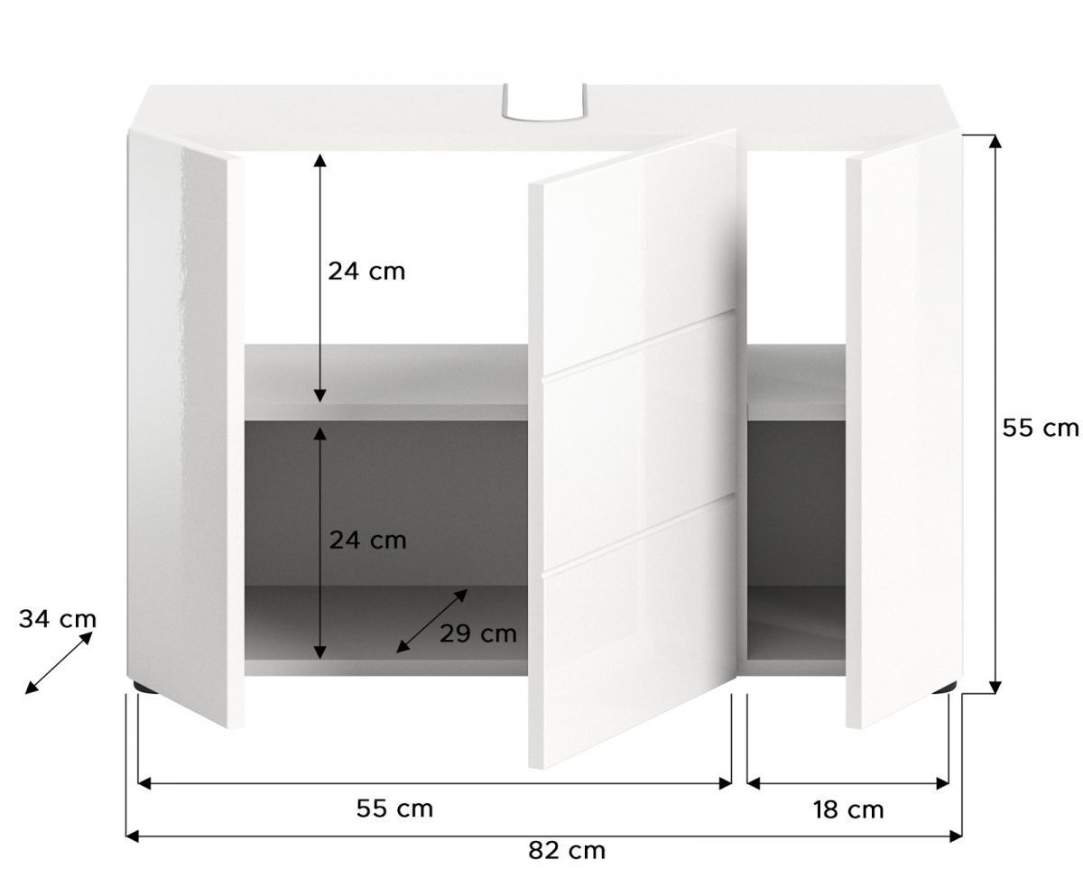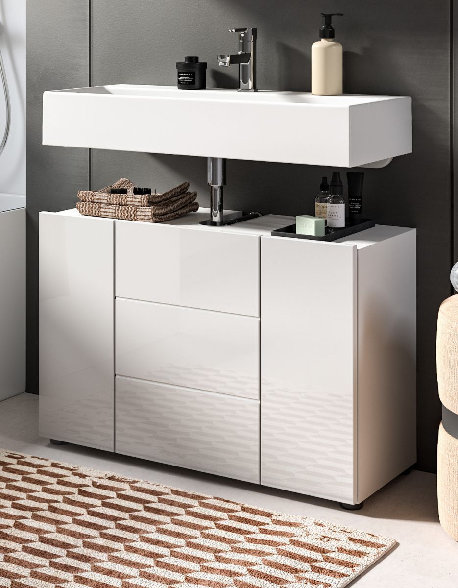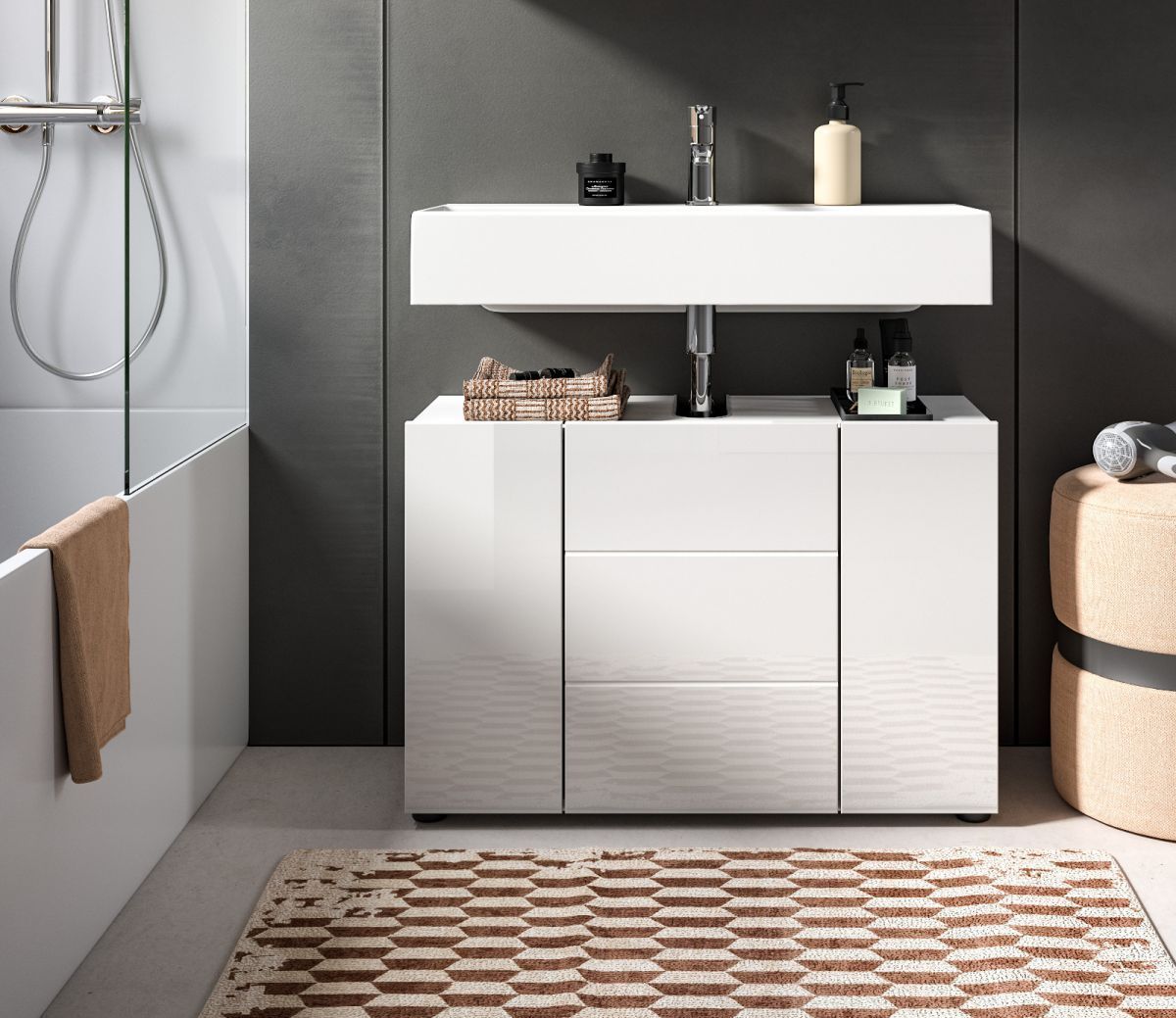 Waschbeckenunterschrank Badschrank weiß Hochglanz Badezimmer Unterschrank 82 cm Larik