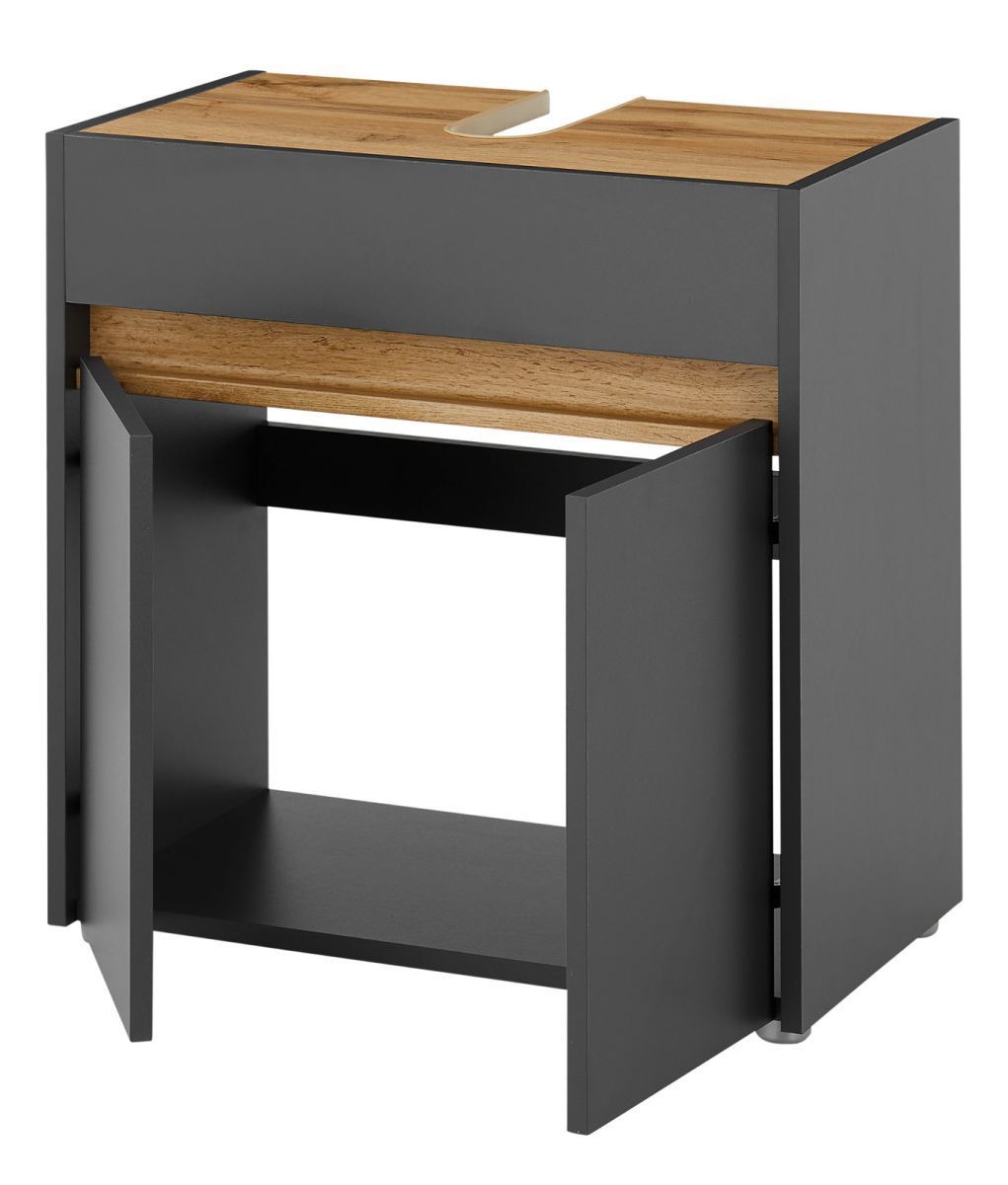 Waschbeckenunterschrank grau und Eiche Waschtisch Unterschrank 60cm Badezimmer Center