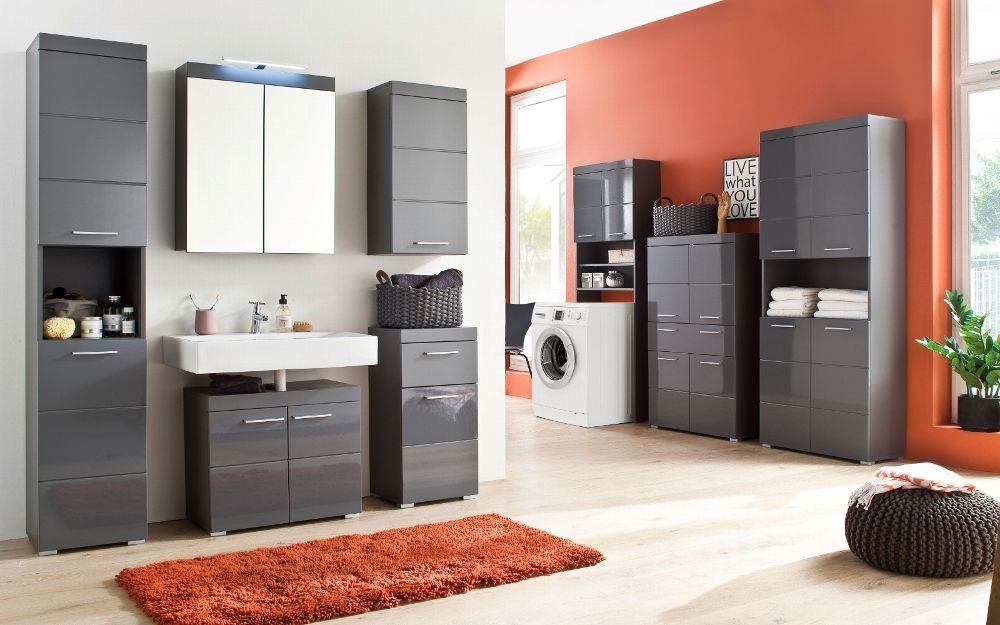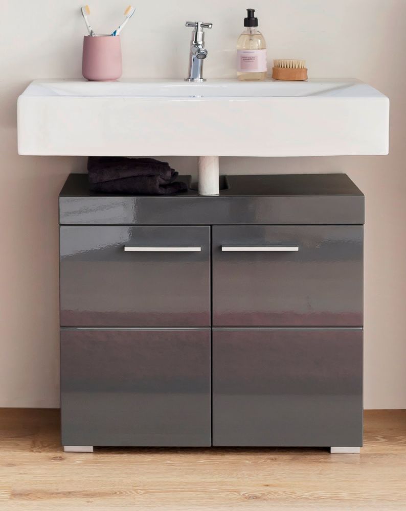 Trendteam Waschbeckenunterschrank Hochglanz grau Bad Unterschrank Badezimmer Möbel Amanda