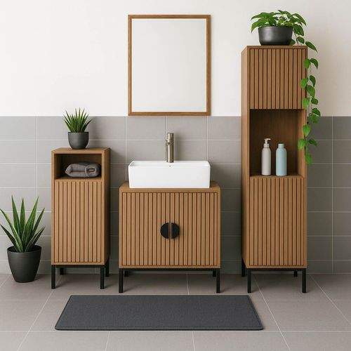 Mendler Waschbeckenunterschrank HWC-O42, Schrank Badschrank, MDF Melamin 62x63x35cm