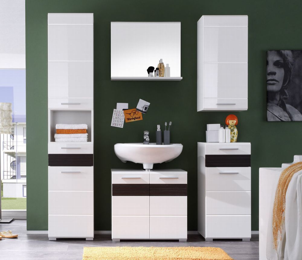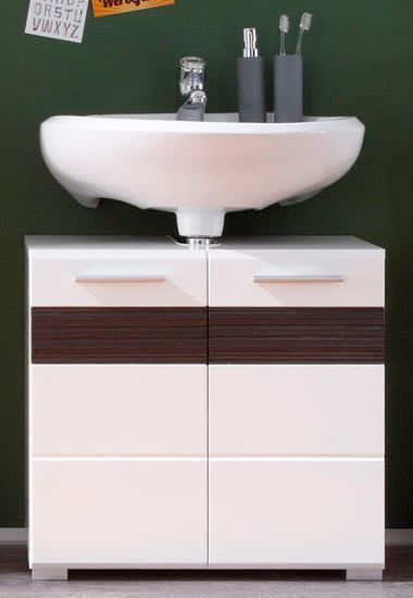 Trendteam Waschbeckenunterschrank Mezzo Weiss Hochglanz Eiche dunkel