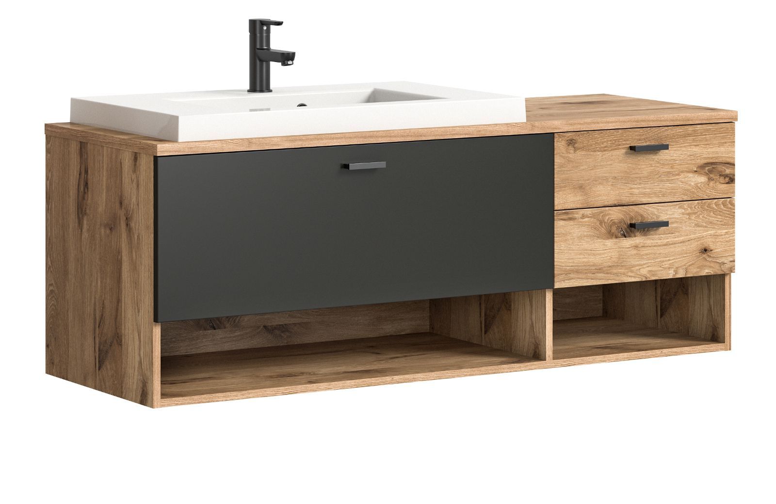 Waschbeckenunterschrank MIT Waschbecken Waschtisch Eiche und grau 138 cm Oderzo