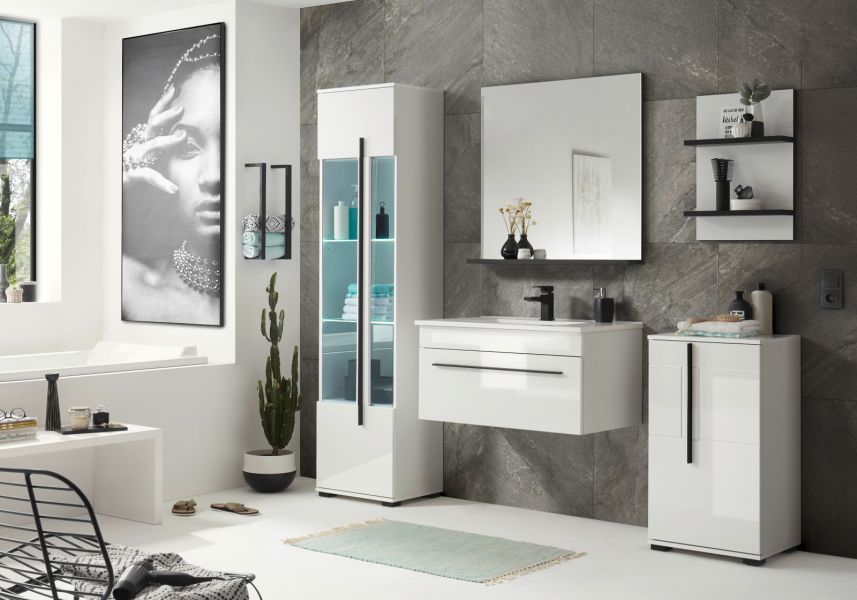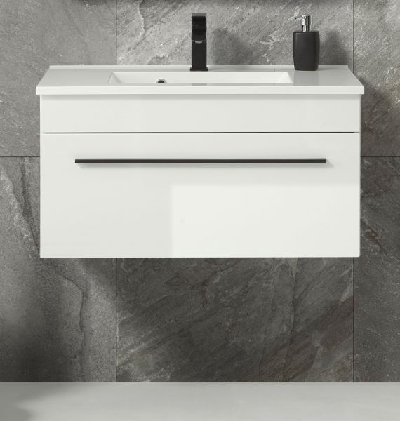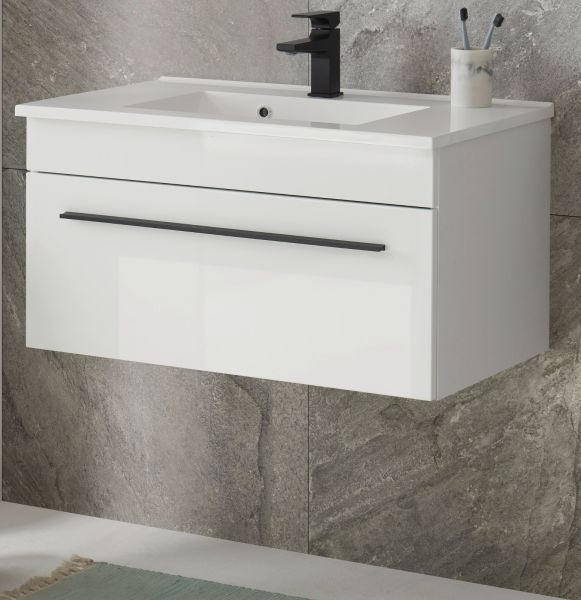 Waschbeckenunterschrank Set MIT Waschbecken weiß Hochglanz Waschtisch 80 cm Design-D