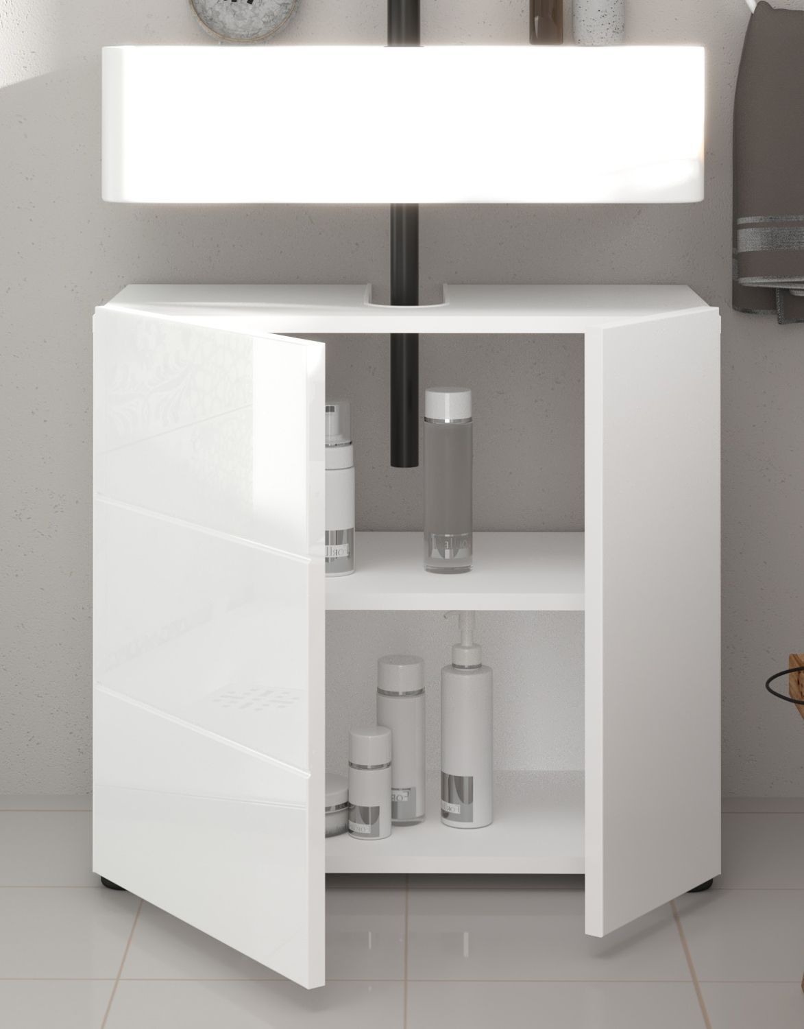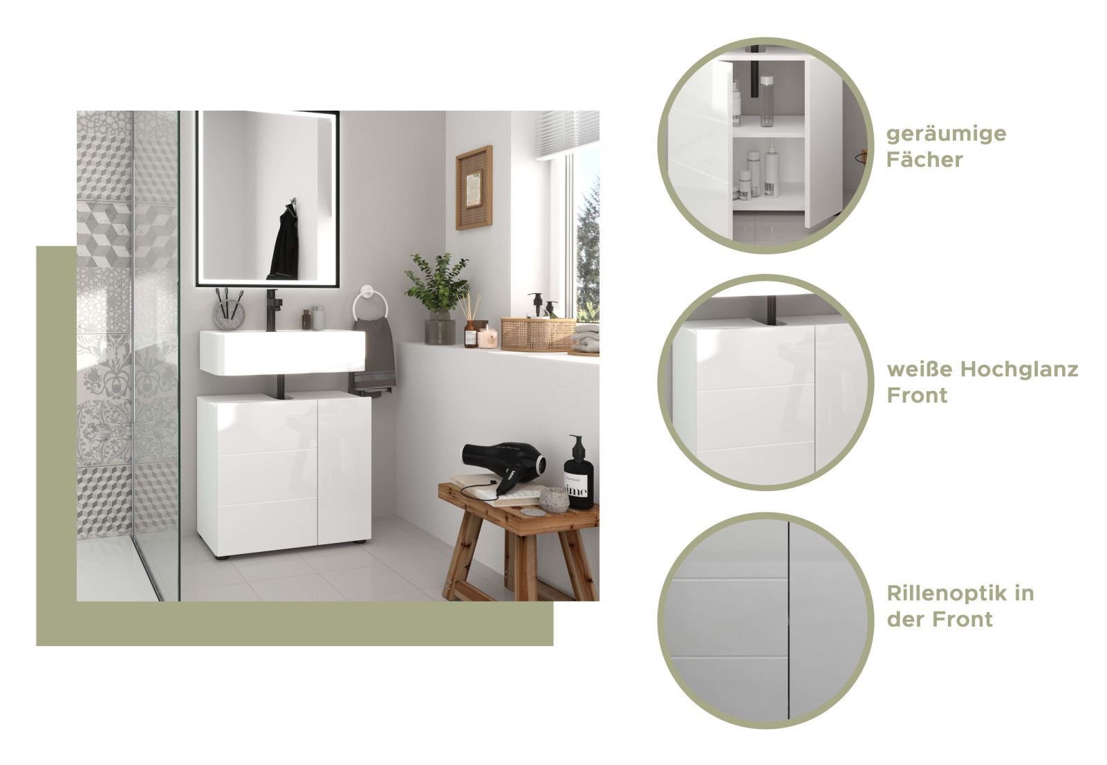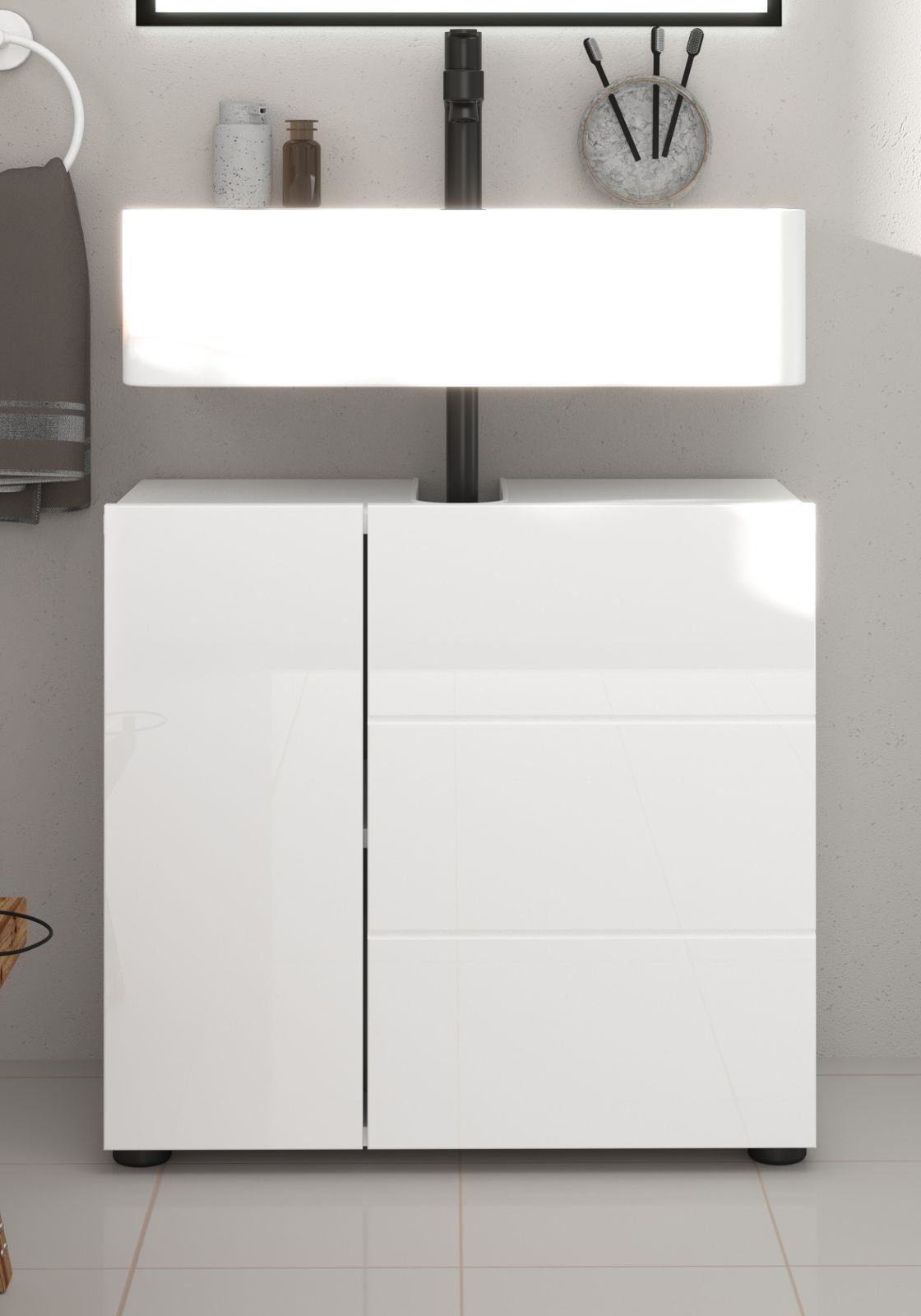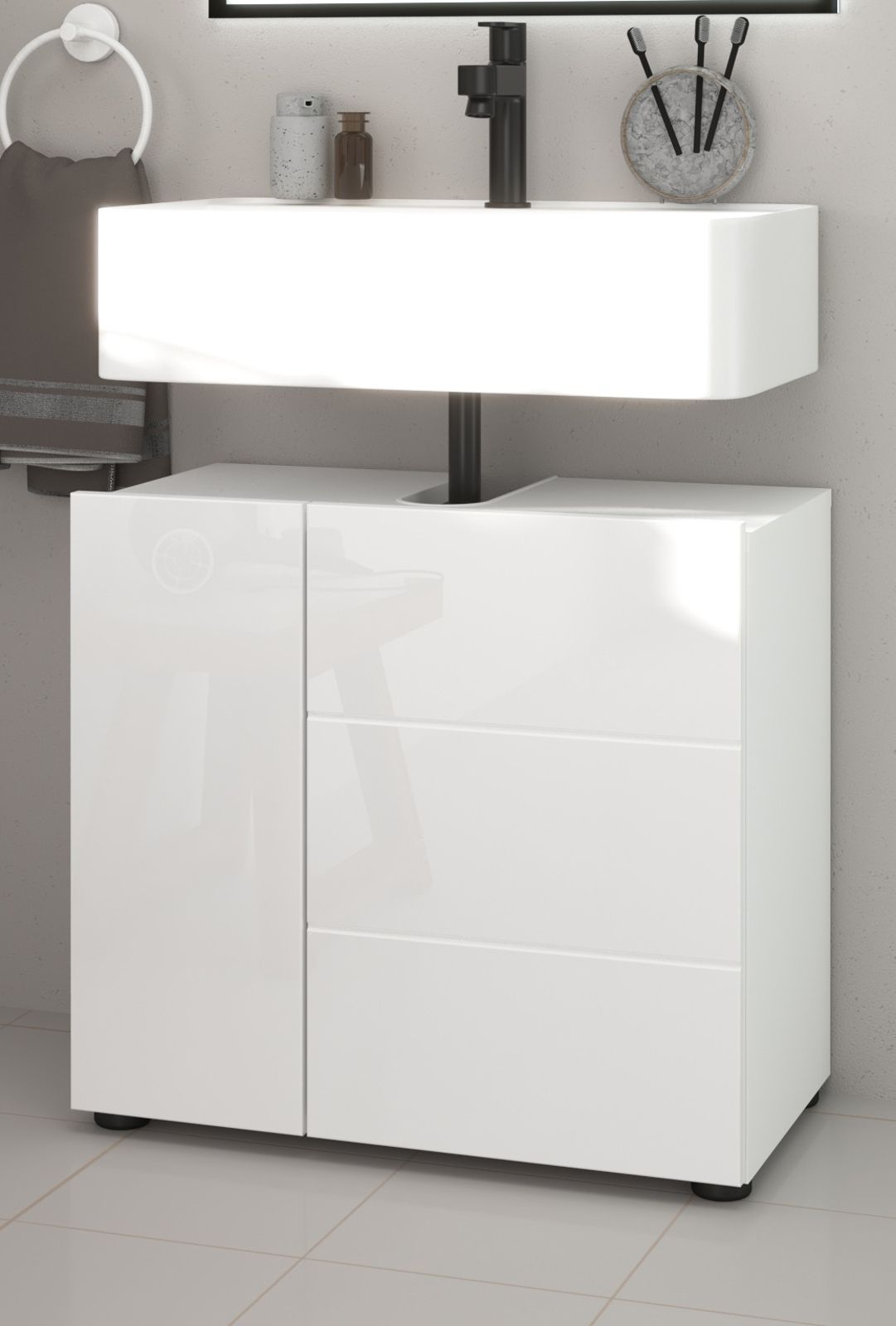 Waschbeckenunterschrank weiß Hochglanz Badezimmer Waschtisch Unterschrank 60 cm Larik