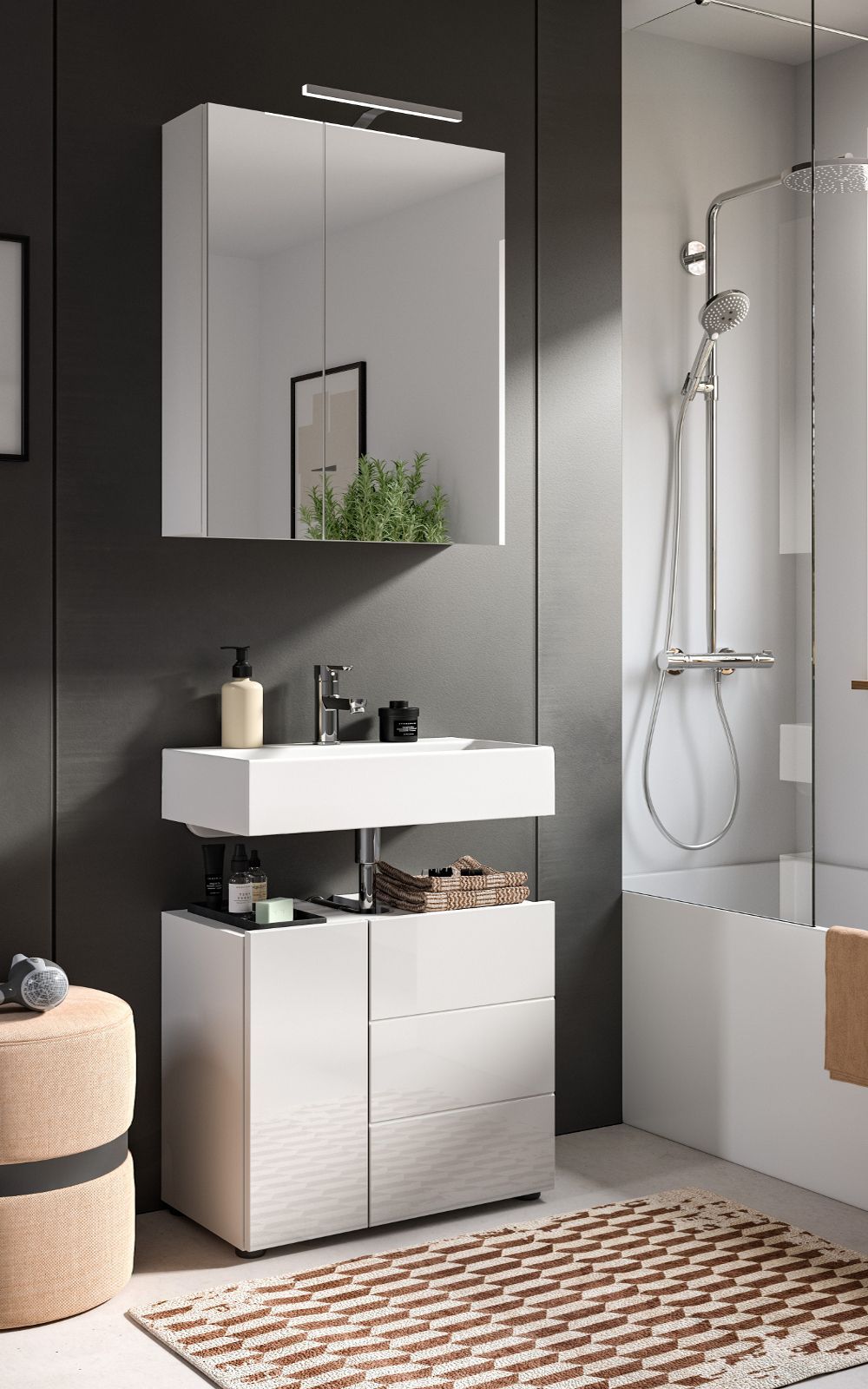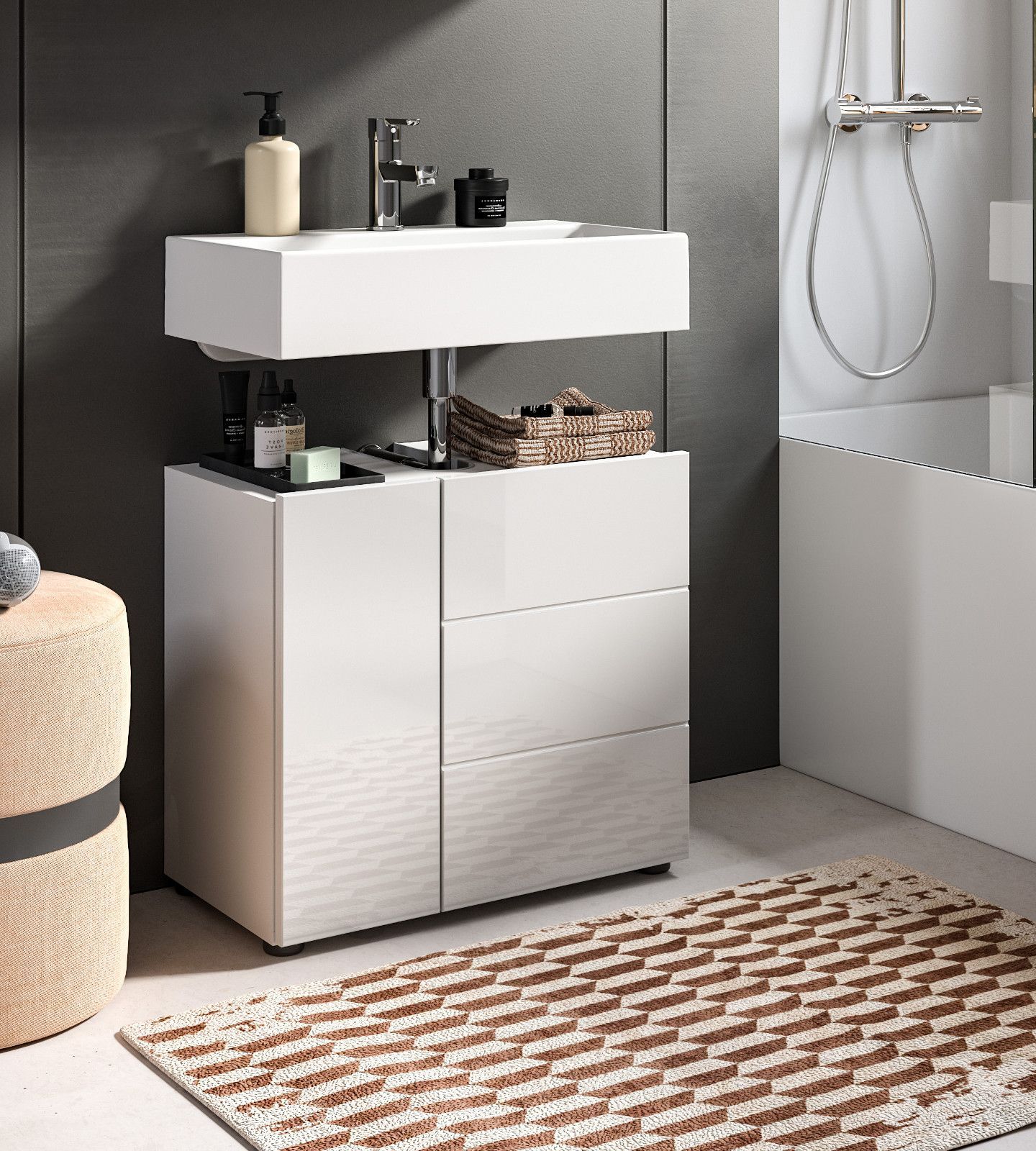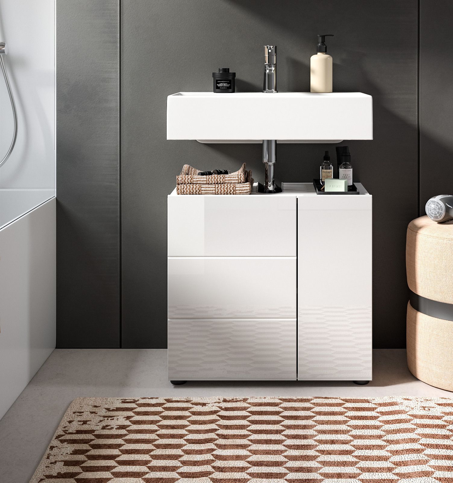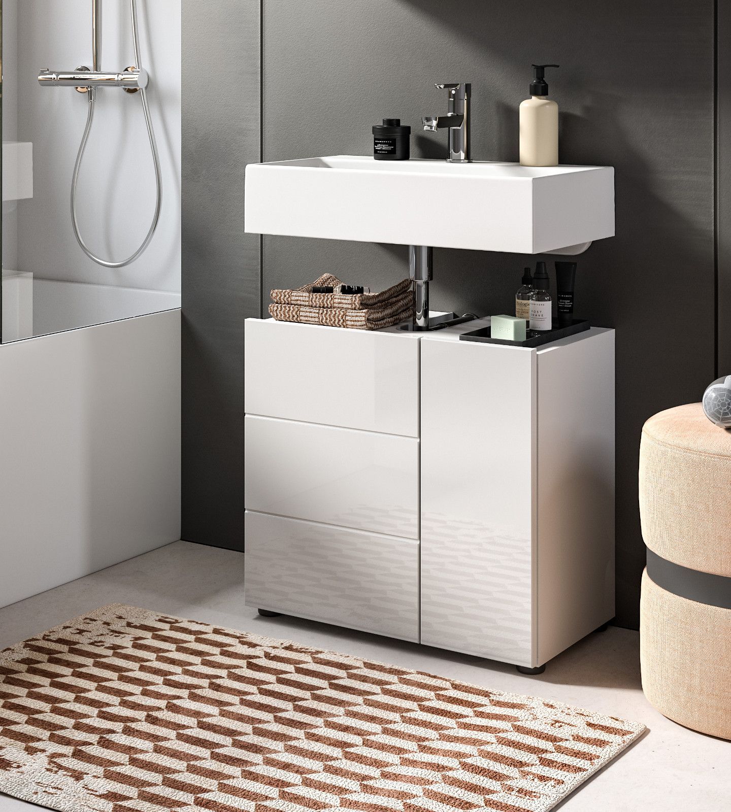 Waschbeckenunterschrank weiß Hochglanz Badezimmer Waschtisch Unterschrank 60 cm Larik