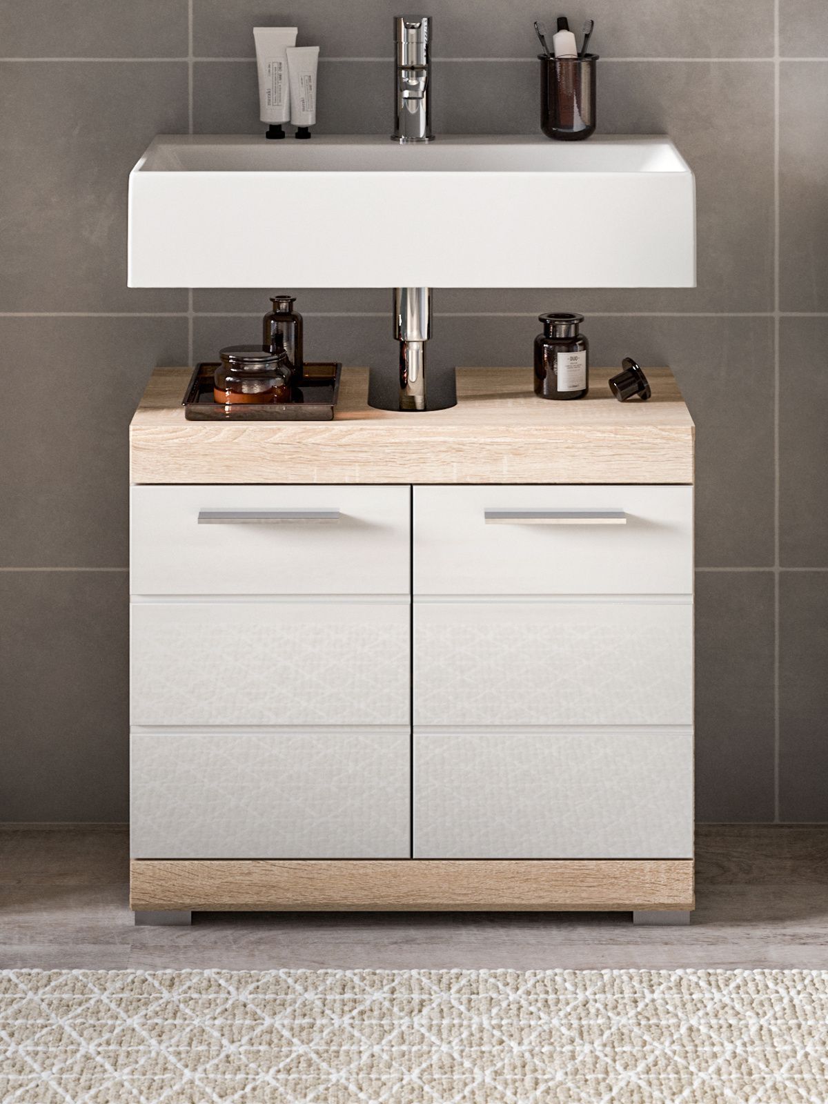 Waschbeckenunterschrank weiß Hochglanz Eiche Sonoma Bad Unterschrank 60 Mambo