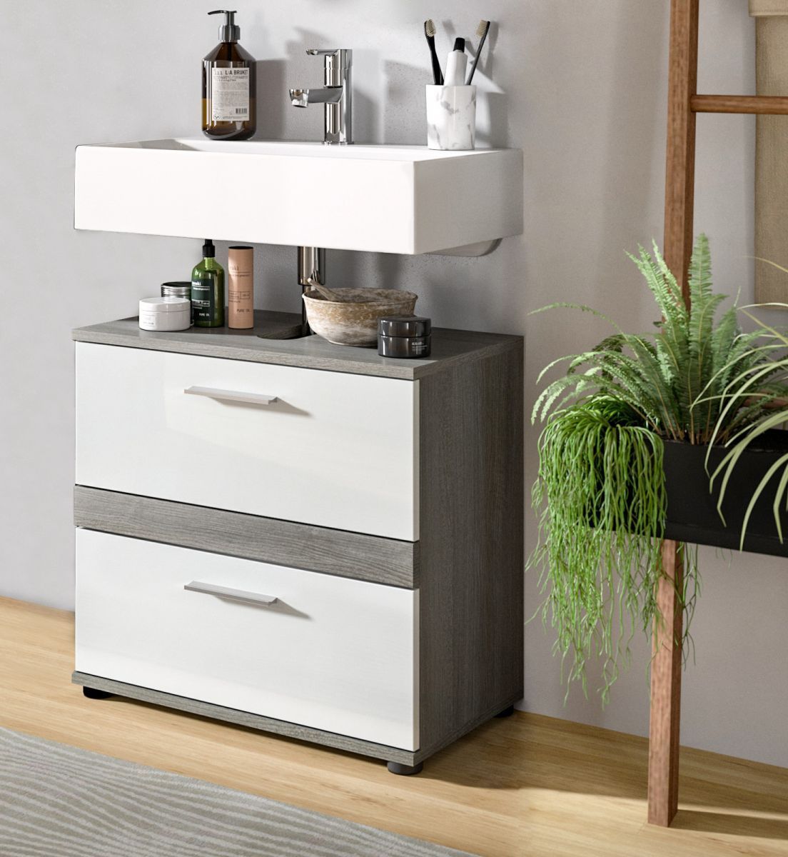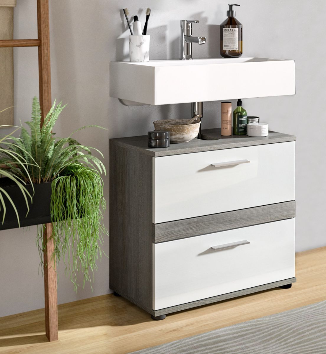 Waschbeckenunterschrank weiß Hochglanz grau Bad Unterschrank 60 cm Waschtisch Bailey
