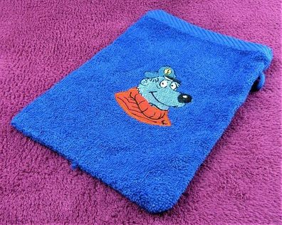 • NEU: Kinder Waschhandschuh "Käpt´n Blaubär" blau bestickt Waschlappen Frottier