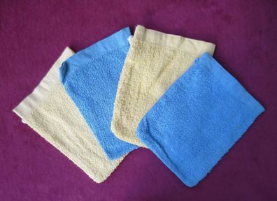 • 4 Waschhandschuhe blau + beige Waschlappen Seifenhandschuh Seiflappen Seifenlapp