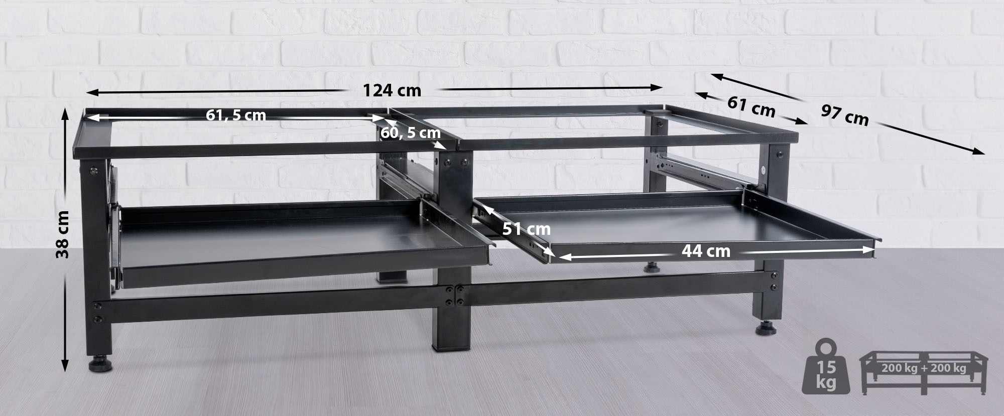 Waschmaschinen Untergestell doppelt DAVID für je 200kg Schwarz Doppeluntergestell