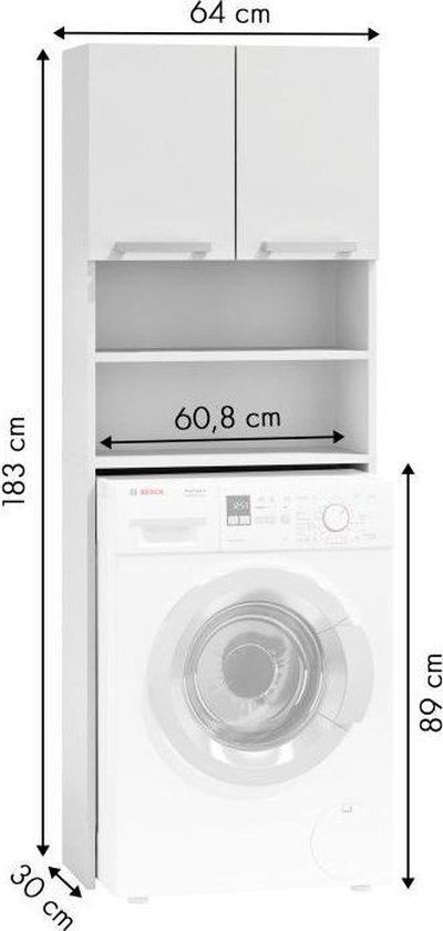 Waschmaschinenschrank - 4 Einlegeböden & 2 Türen - weiß