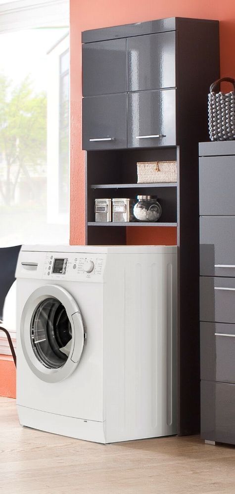 Trendteam Waschmaschinenschrank Bad Schrank Badezimmer Hochschrank Hochglanz grau Amanda