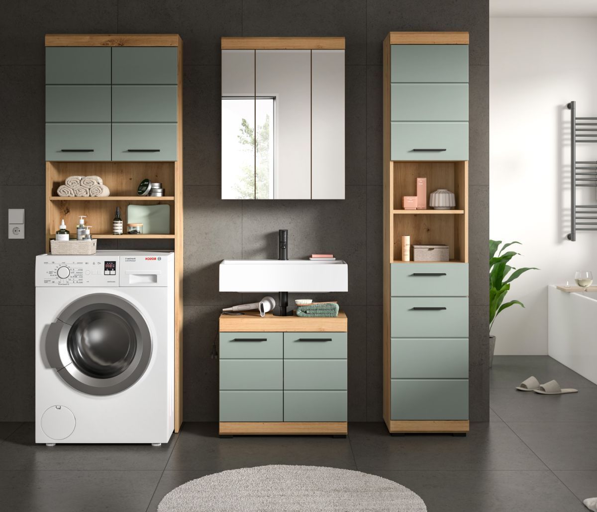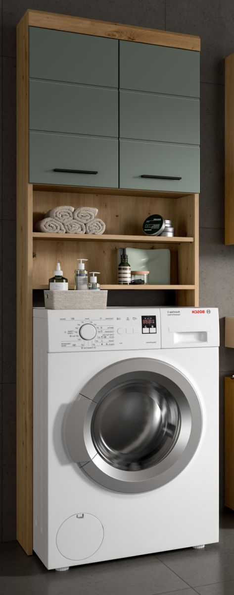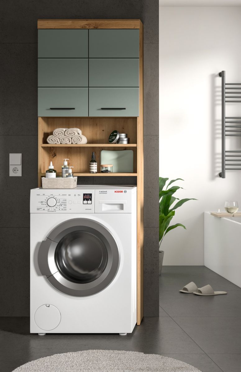 Waschmaschinenschrank Waschmaschinen Überbau Salbei grün Eiche Hochschrank Shawn