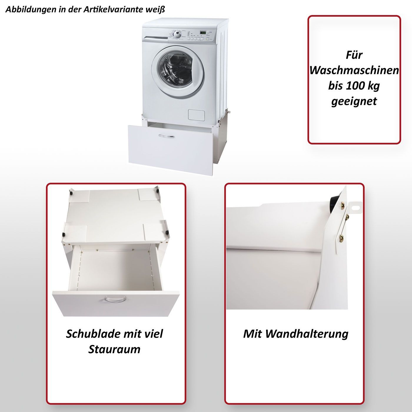 Mendler Waschmaschinenunterschrank HWC-E50, Sockel Podest Erhöhung Untergestell, Schublade