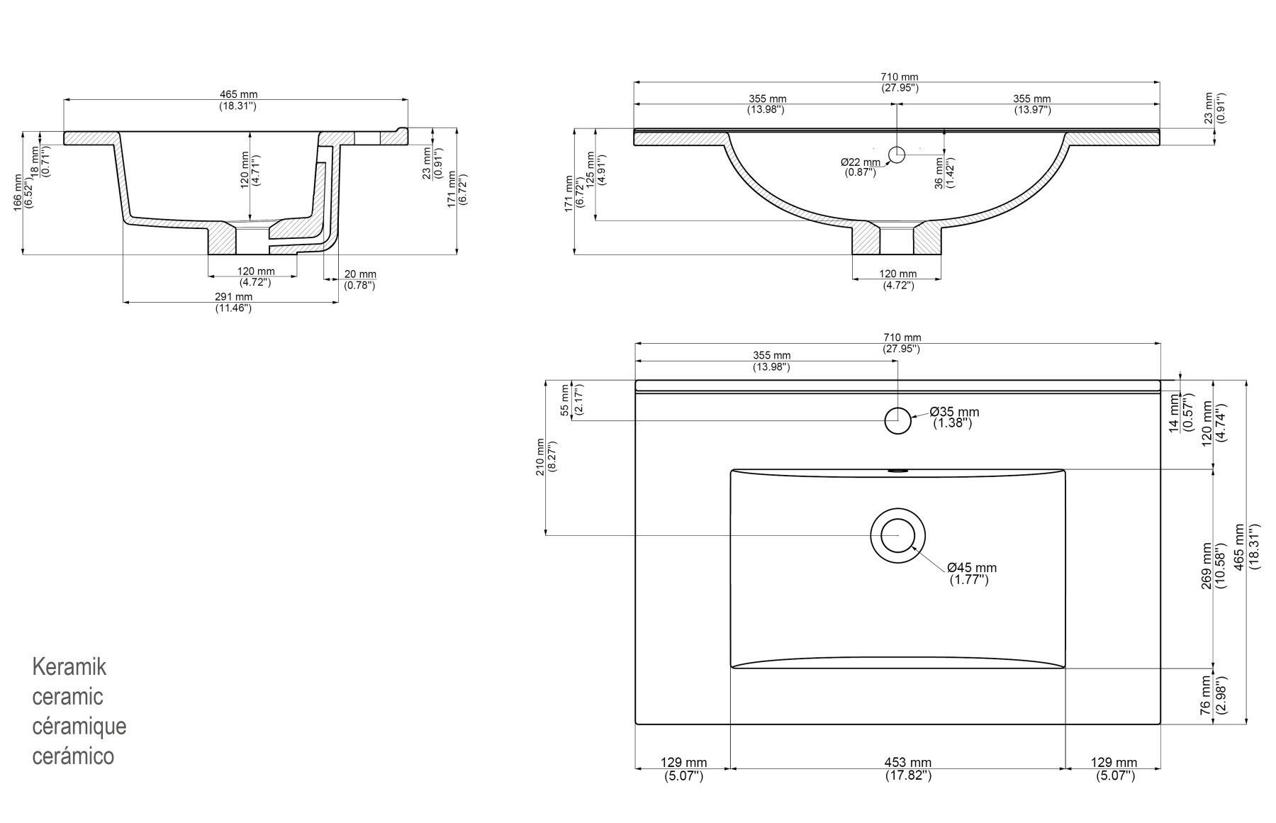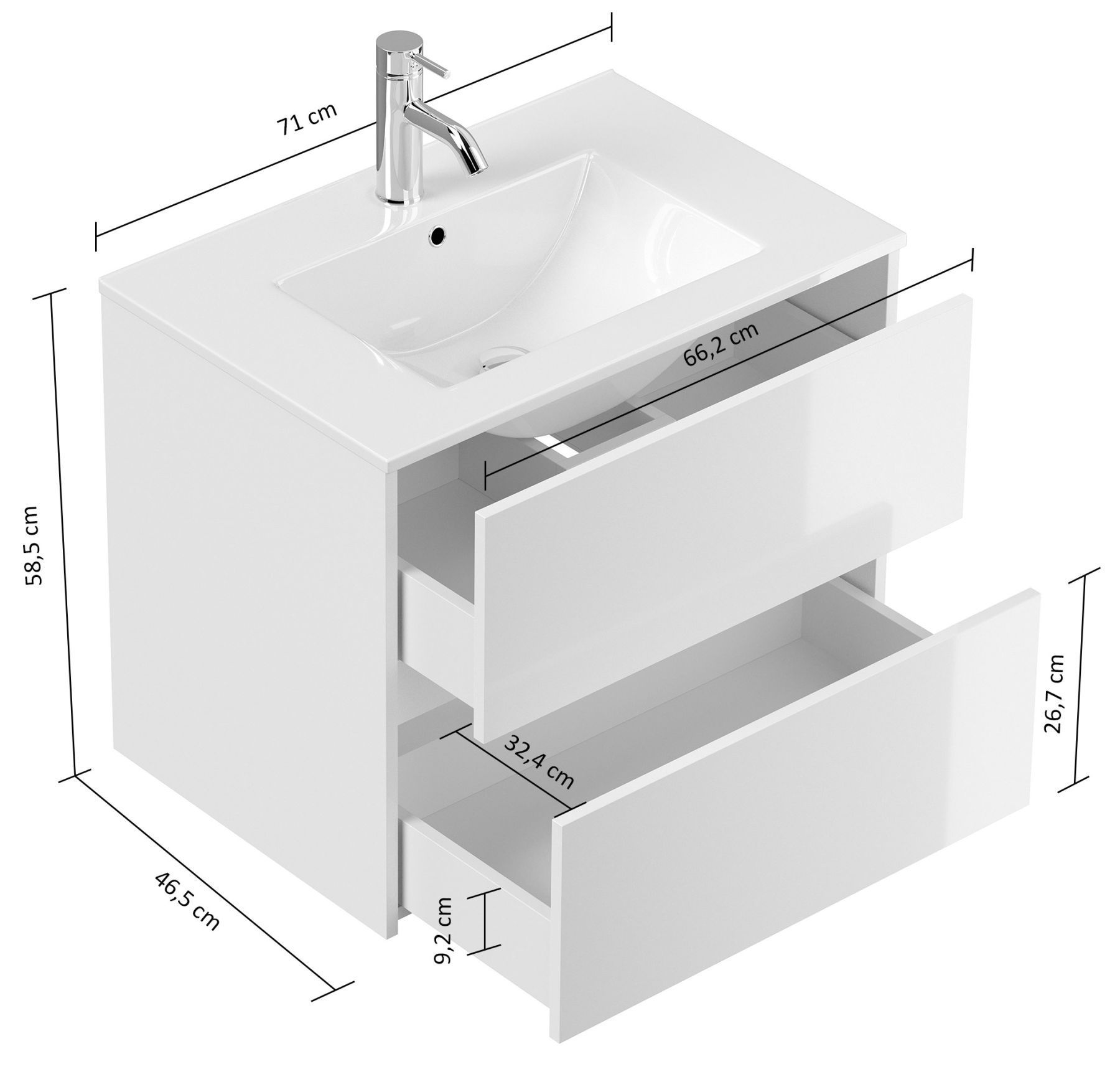 Waschplatz 71cm Waschtisch Limes Badezimmer Unterschrank Keramikbecken