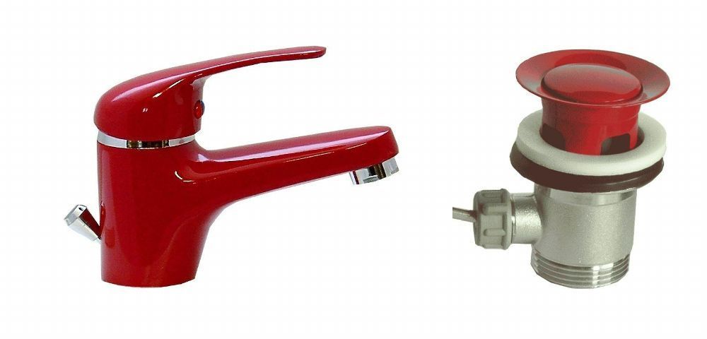 Wagner Waschtisch, Bad, Wasserhahn, Armatur, rot + Excenter rot