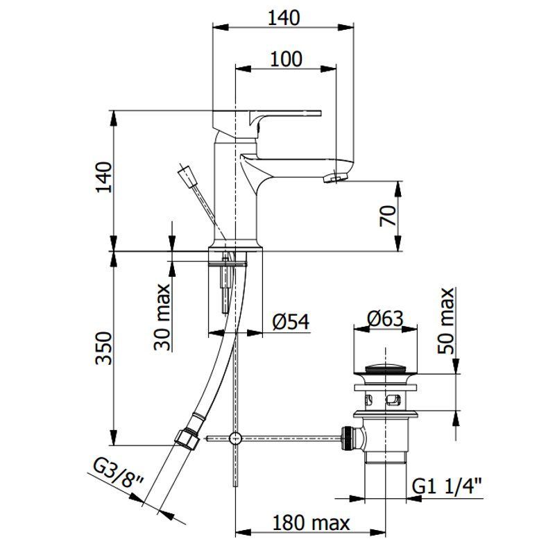 Waschtisch Einhebelmischer PRIUS Komplett Set 7910 mit Ablaufgarnitur, chrom